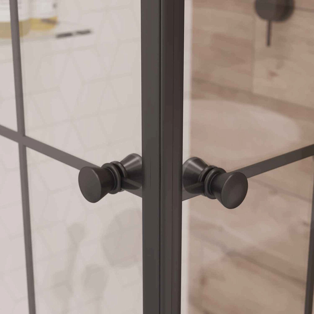 Тип: Душевой уголок форма: квадратная двери раздвижные; поддон акриловый низкий (высота 14см, глубина 5см) ; сифон с гофрой, экран несъемный; профиль алюминиевый черный; 2-е металлические ролики; стильные металлические ручки; закаленное прозрачное стекло 4 мм с черным принтом; быстрая сборка -Quick staple. (Поддон входит в комплектацию)