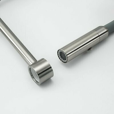 Пользуюсь данным смесителем в сером цвете (оружейная сталь) уже почти год. Выглядит очень красиво и вписывается в наш интерьер. Смеситель высокий, очень тяжелый и качественный, в комплекте шел дополнительный картридж. Ученье удобно пользоваться гибким изливом для мытья фруктов и овощей, самой мойки и др. Также обращаю внимание, что ручка-переключатель крутится и может быть расположена как справа так и слева. В целом отличный смеситель для кухни: не подтекает, удобен, красив.