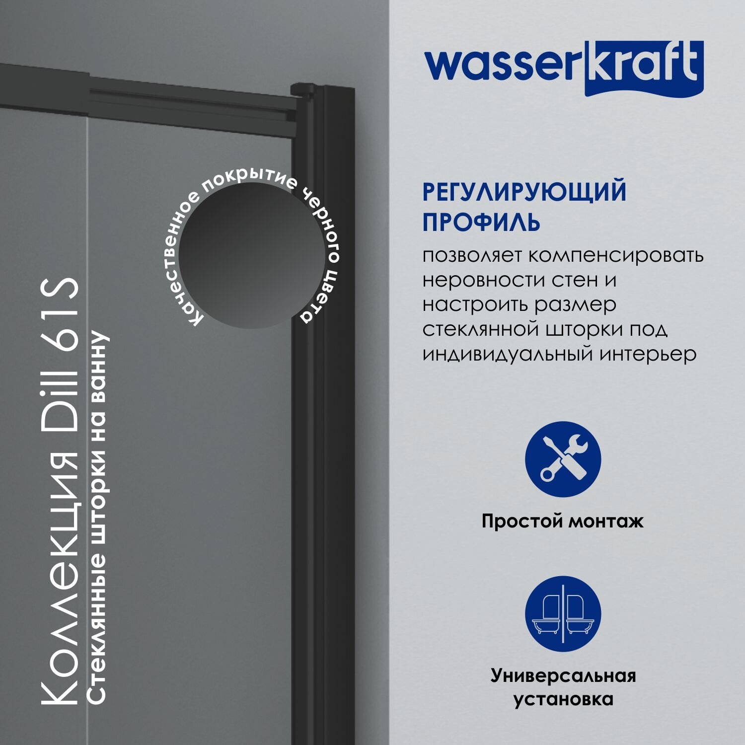 Шторка для ванны WasserKRAFT Dill 61S02-100WS