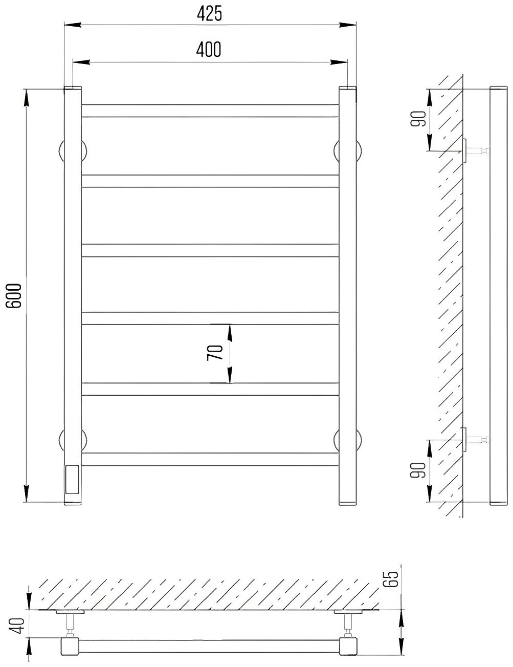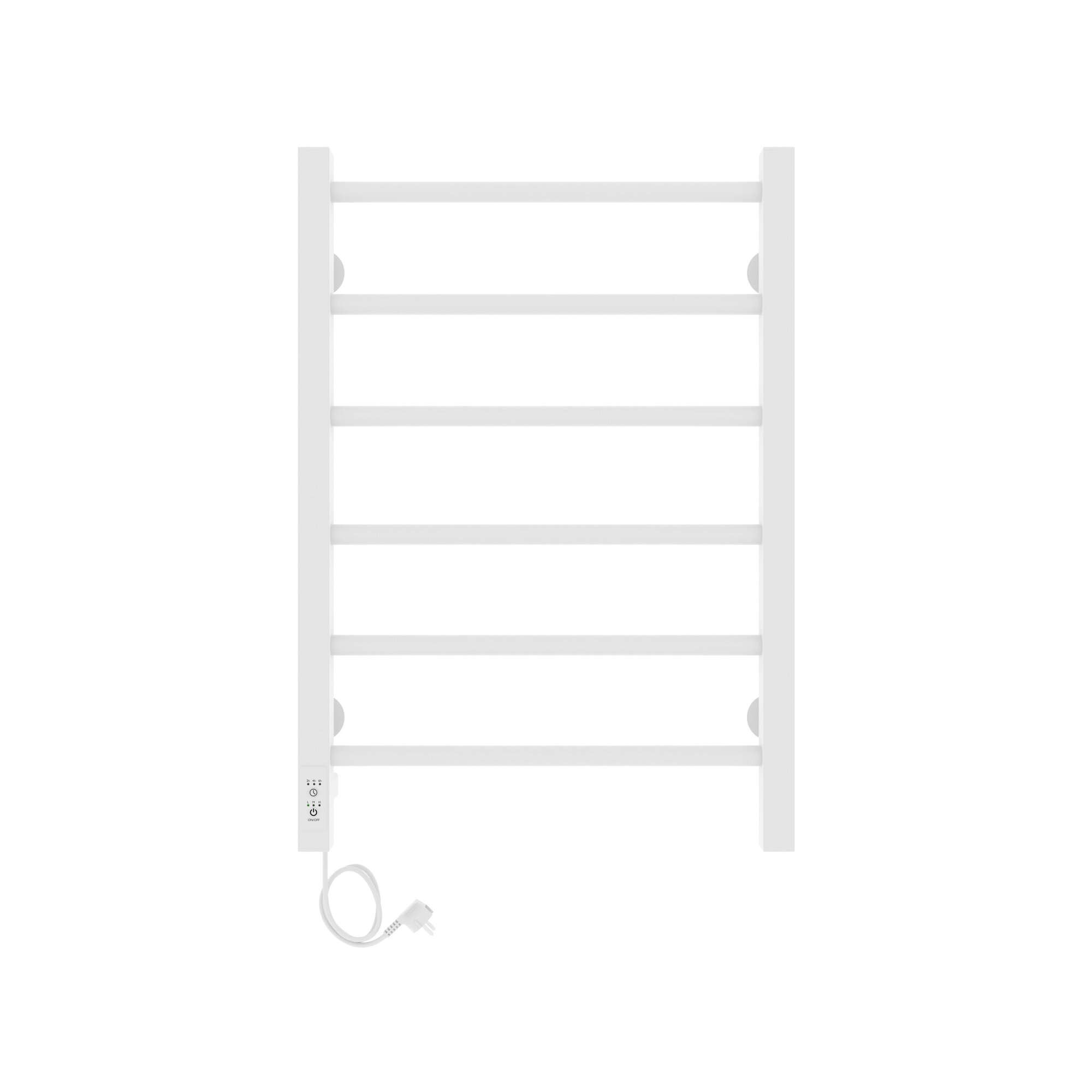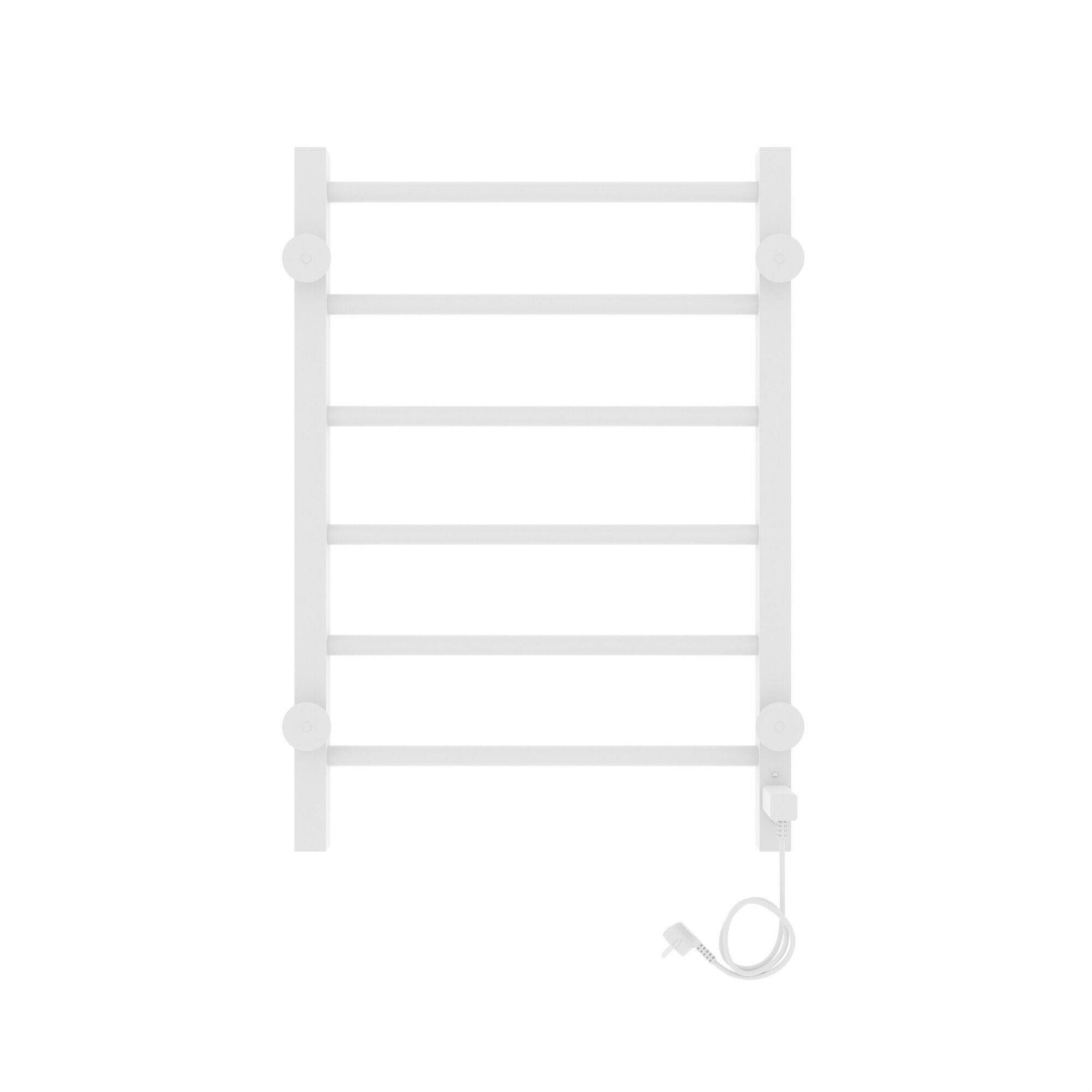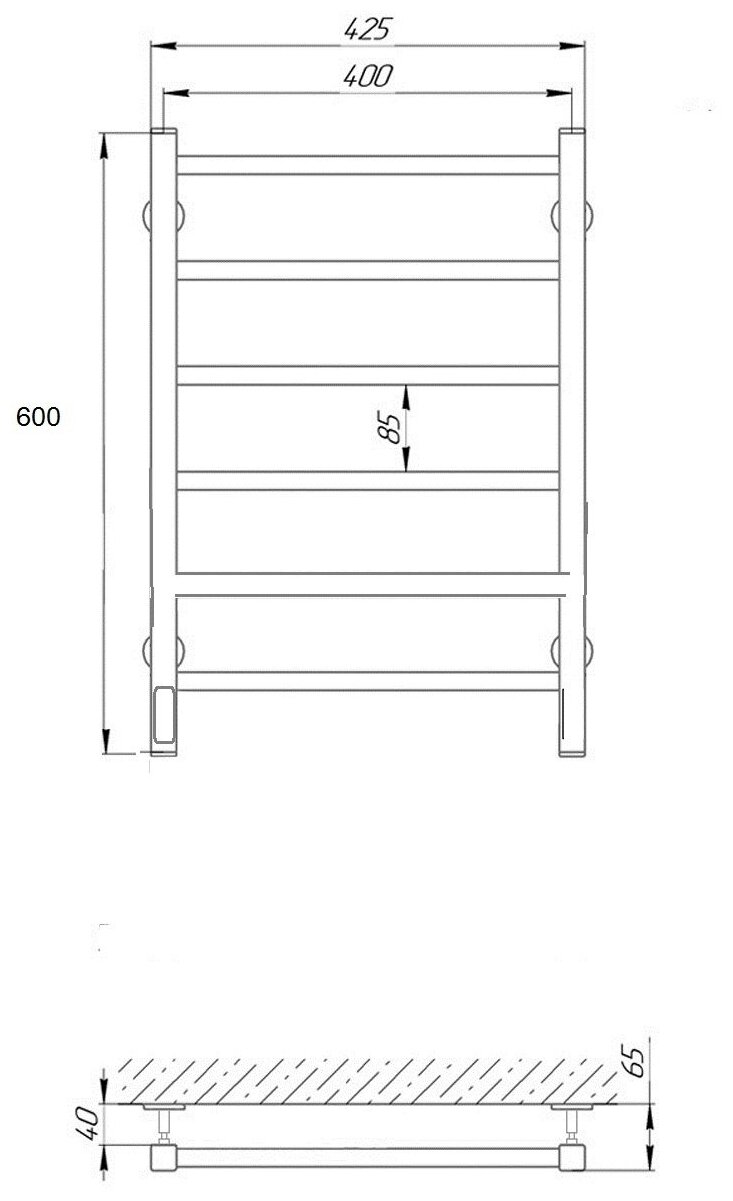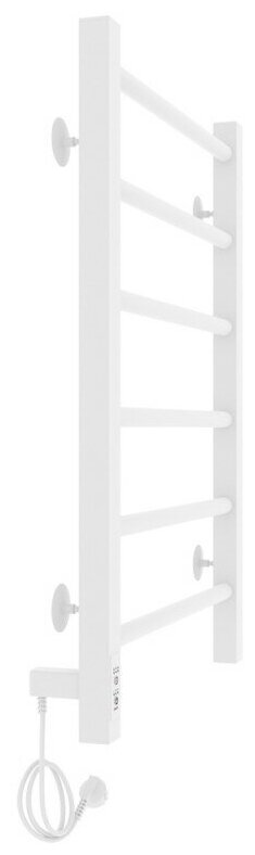 Материал: сталь черная. Покрытие: краска порошковая белая RAL 9016. Диаметры и толщина: стойка □ 25х25, толщина 1,5 мм; перемычка Ø18, толщина 1,5 мм. Регулятор: на вилке. Терморегулятор: да. Температура поверхности изделия*: 50±5°C. Напряжение питания: 220 В
