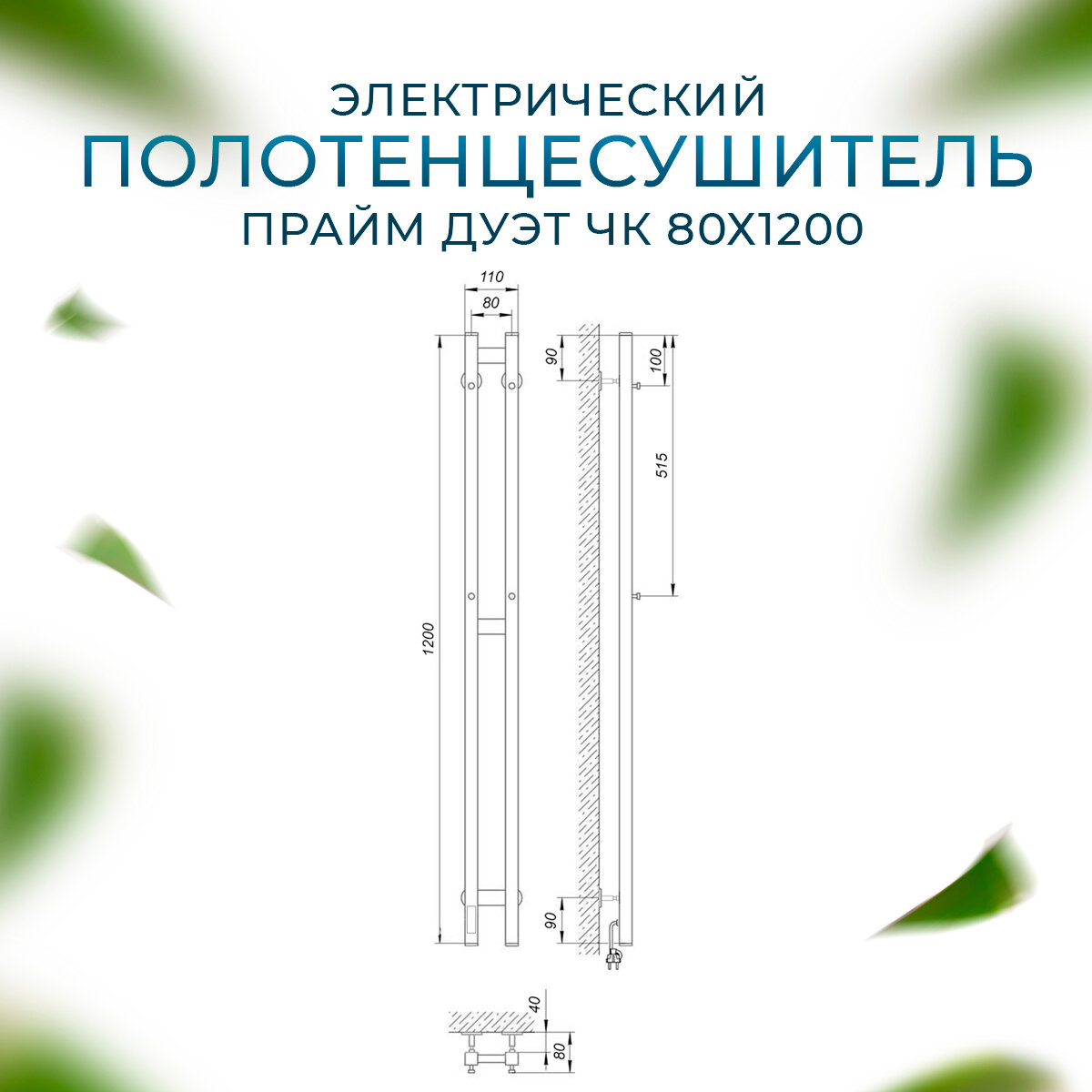 Электрический полотенцесушитель Laris Прайм Дуэт ЧКЧ 80х1200 L 73207608.