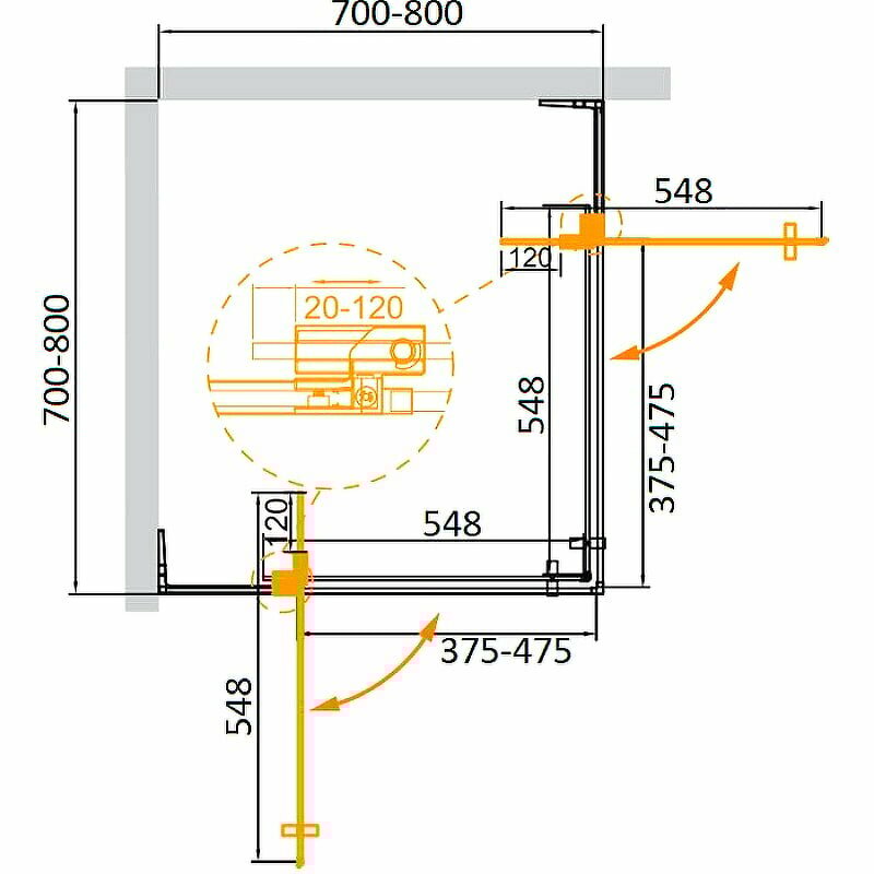 Душевой уголок Cezares Slider 70x70 SLIDER-A-2-70/80-GRIGIO-Cr.