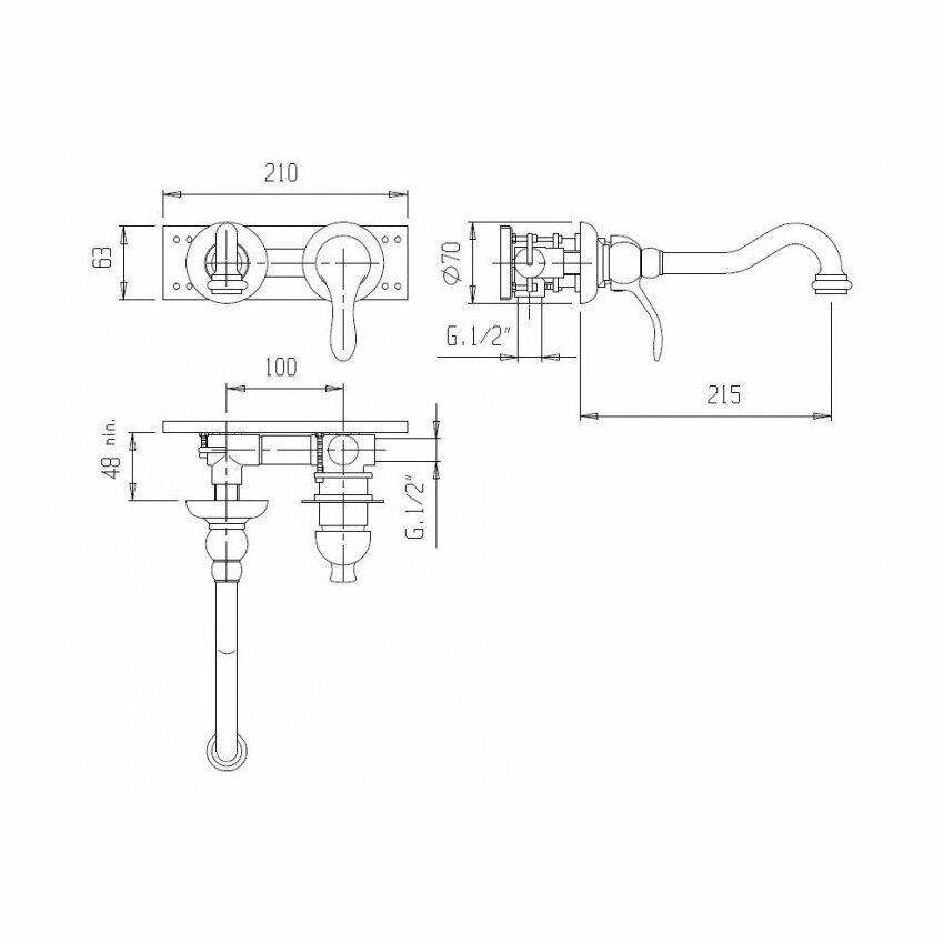 Управление: рычажное. Материал: латунь. Механизм: керамический картридж. Отверстия для монтажа: 2 отверстия. Тип подводки: внутренний (скрытый) монтаж 1/2". Оснащение: аэратор