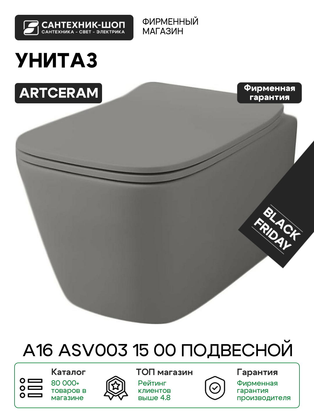 На сегодняшний день товар «Подвесной унитаз ArtCeram A16 ASV003 15 00 grigio oliva без сиденья A16 Rimless ASV003 15 00» можно купить с кешбеком в 2 магазинах: Сантехника Тут, dushevoi