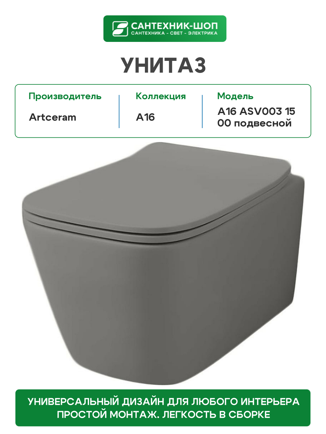 Сервис сравнения цен СкидкаГИД предлагает сравнить цены на товар «Подвесной унитаз ArtCeram A16 ASV003 15 00 grigio oliva без сиденья A16 Rimless ASV003 15 00»