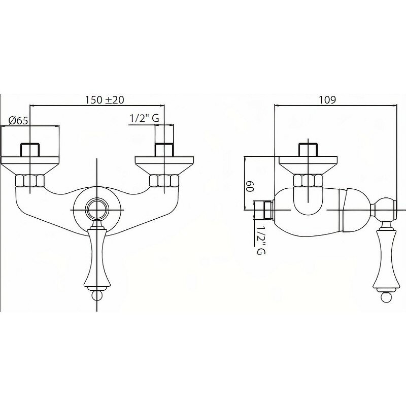 Управление: рычажное. Материал: латунь. Исполнение: хром, бронза, золото 24 карат, чёрный матовый, белый матовый. Механизм: керамический картридж. Отверстия для монтажа: 2 отверстия. Тип подводки: 1/2". Оснащение: эксцентрики. Рабочий интервал давления в водопроводной сети: 0,5-6,0 Атм