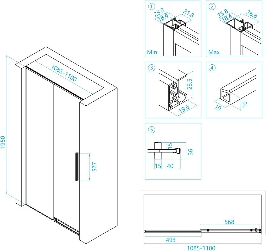 - Исполнения полотна двери: прозрачное стекло, толщиной 6 мм.
