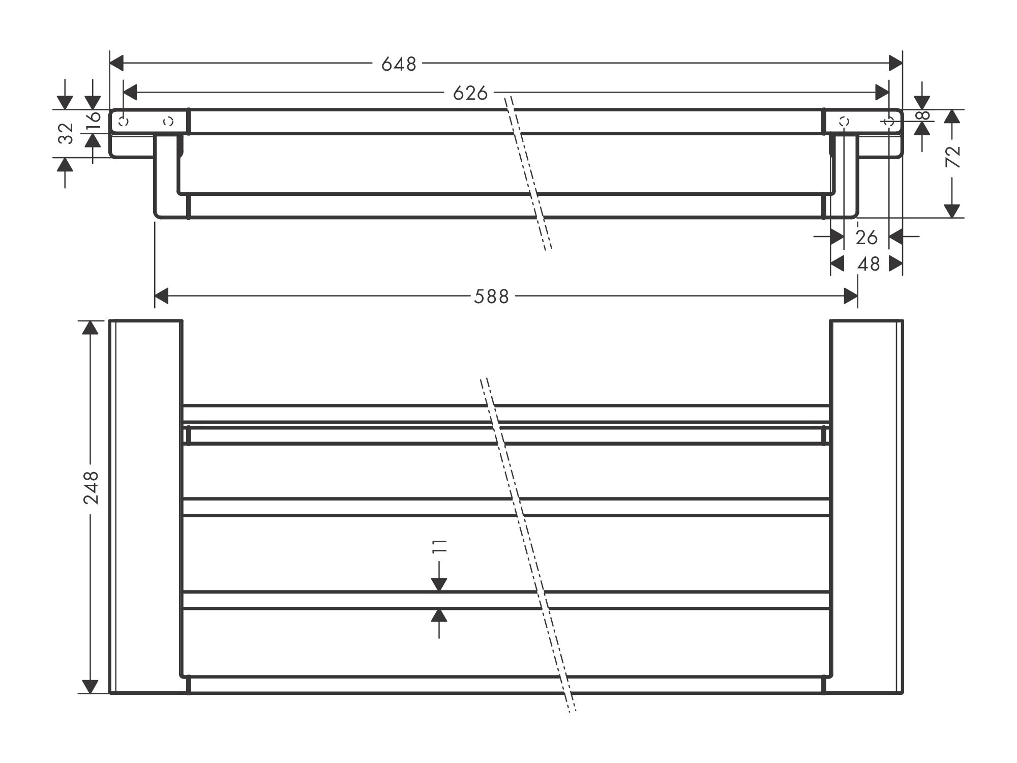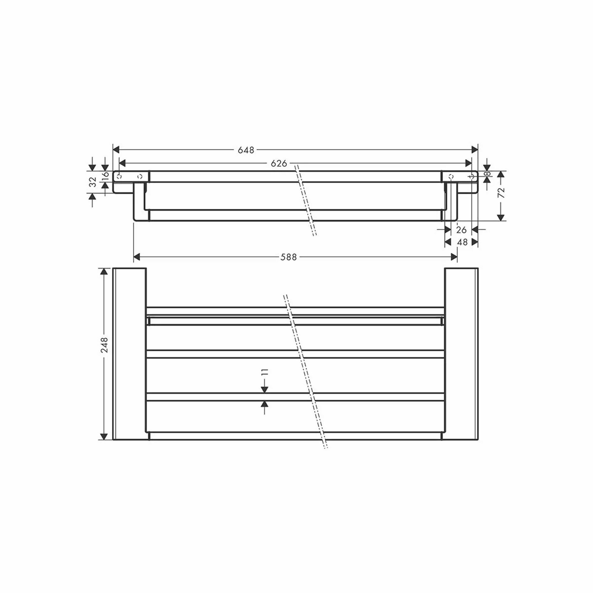 - Размеры (ШхВхД): 648х72х248 мм.