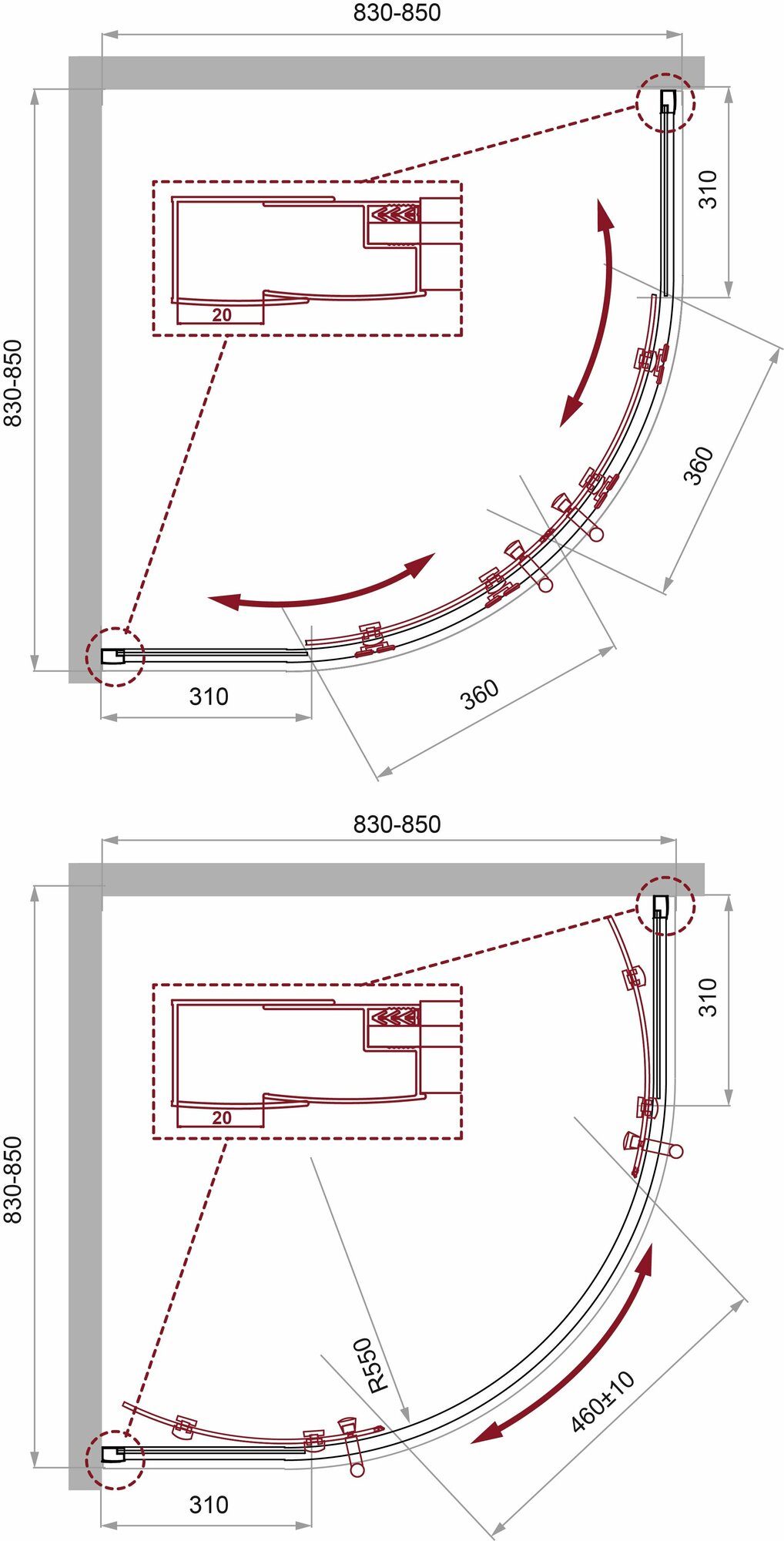 | Радиус поддона | R550 |