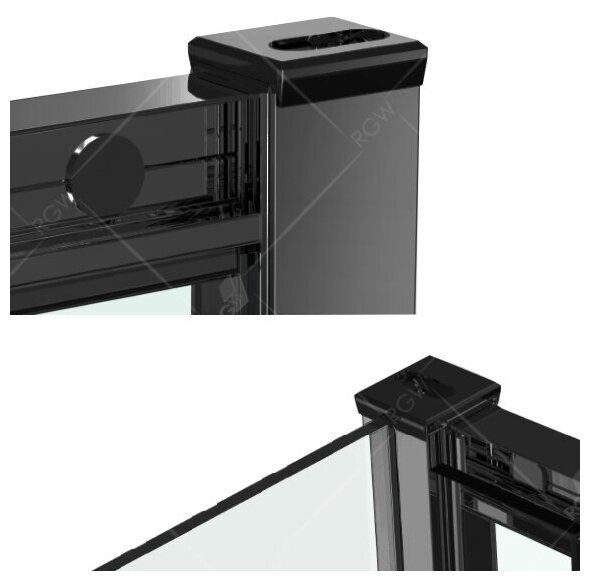 Душевой уголок RGW CL-48B (CL-14B + Z-050-1B) 160х100 стекло прозрачное. Состоит из душевой двери RGW CL-14B и боковой панели RGW Z-050-1B. Душевая дверь CL-14B: конструкция для быстрой установки с пластиковой верхней крышкой, черные матовые алюминиевые профили, закаленное прозрачное стекло 5 мм, черные матовые двойные ручки из ABS, черные матовые Двойные верхние и одинарные нижние ролики, регулировка 15 мм с каждой стороны