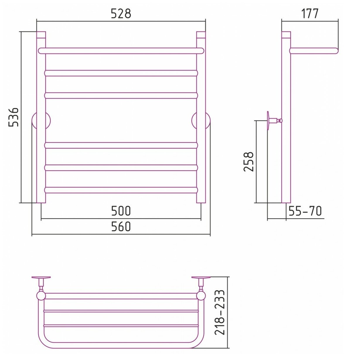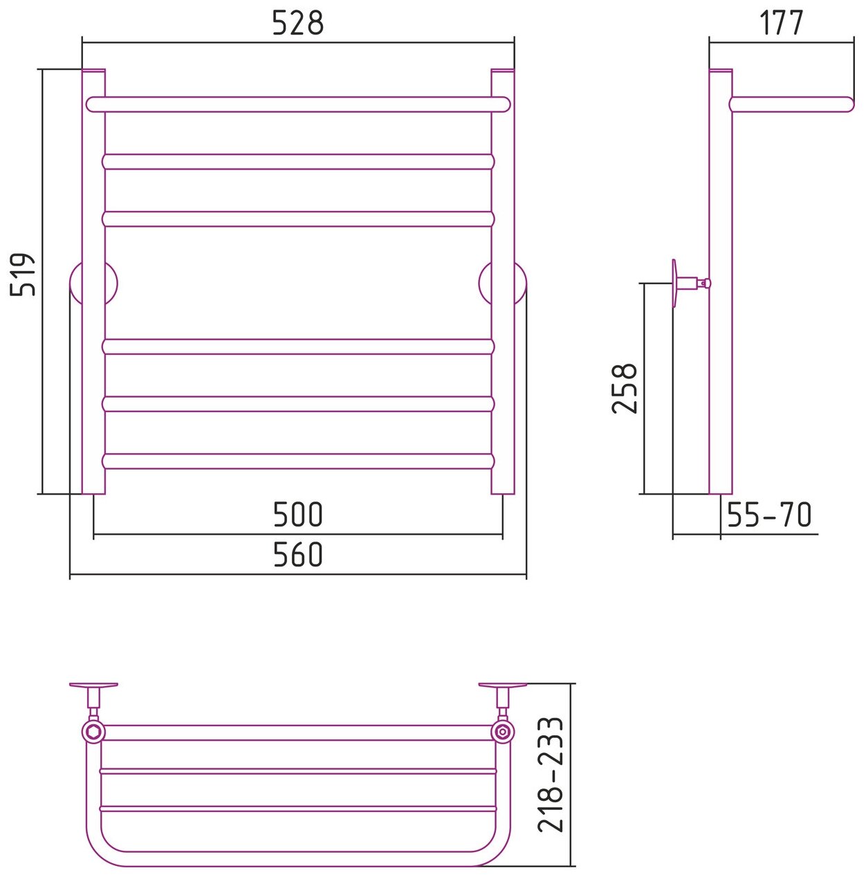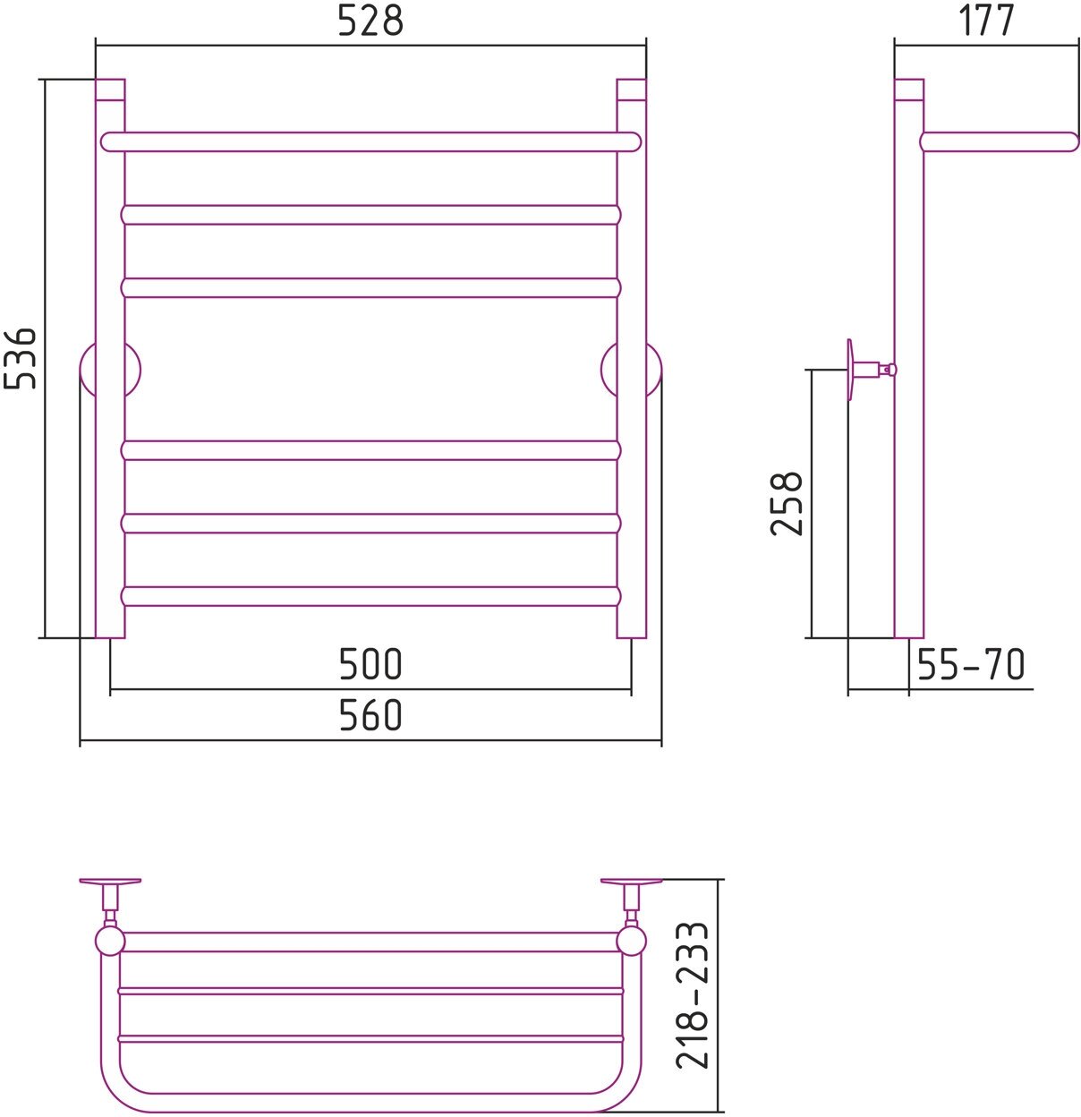 Сервис сравнения цен СкидкаГИД предлагает сравнить цены на товар «Водяной полотенцесушитель Стилье Универсал-57 60х50 П18 с полкой (00657-6050) (размер: 60x56 см)»