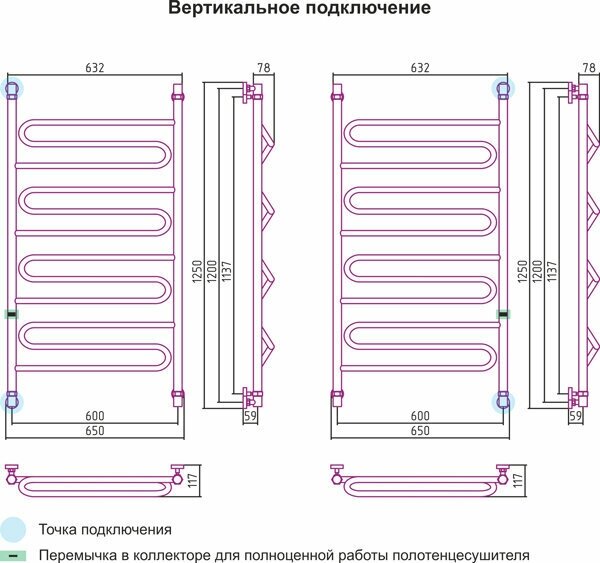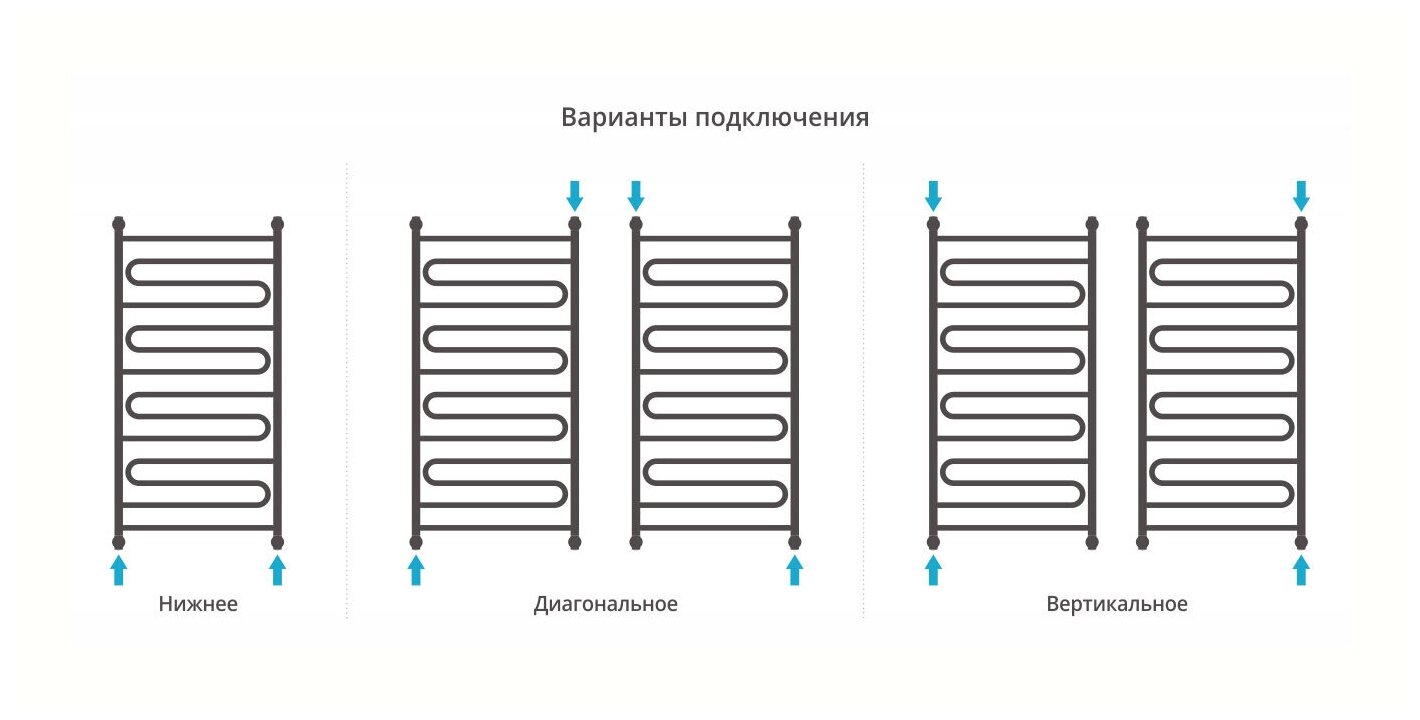 | Подключение | Вертикальный / Диагональный / Нижний |