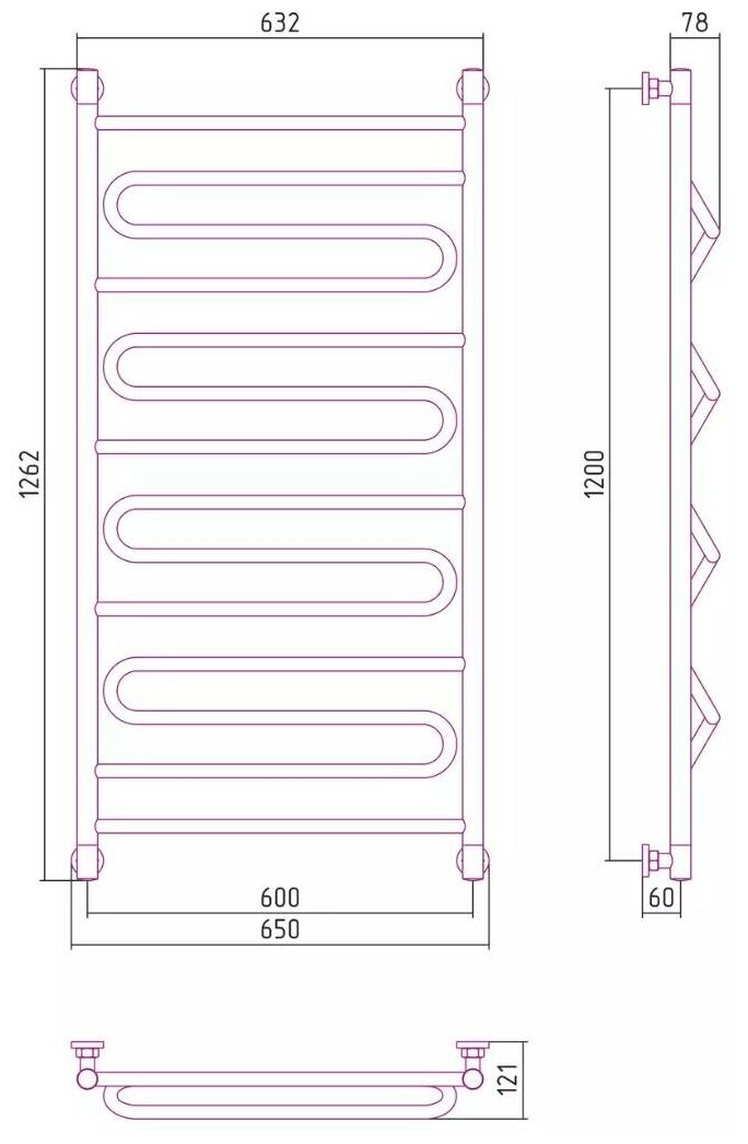 Водяной полотенцесушитель Сунержа Элегия+ 120х60 хром (00-0205-1260)