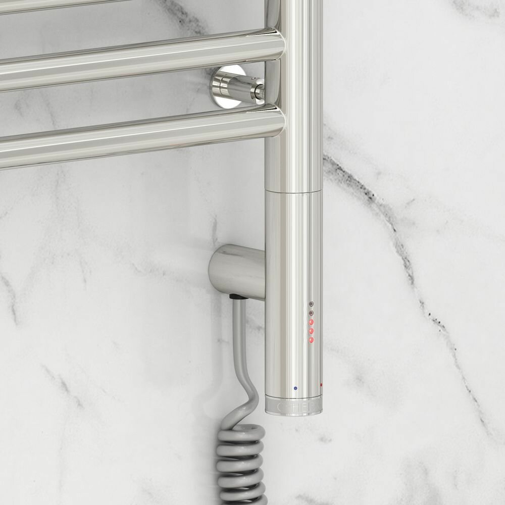 Электрический полотенцесушитель из нержавеющей стали, оснащённый многофункциональным блоком управления МЭМ Сунержа.