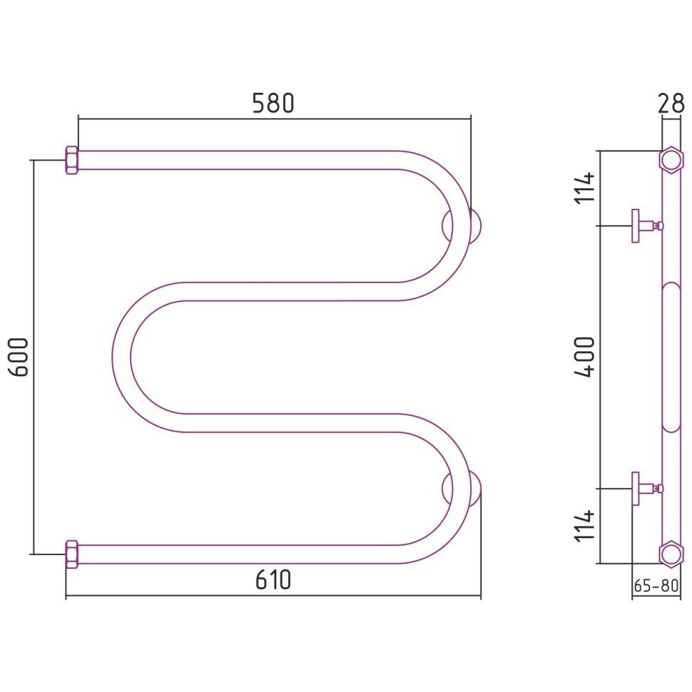 Полотенцесушитель водяной. Модель М-образный. ПолимерПротект есть. Рабочее давление от 3 до 15 атм. Давление испытаний 25 атм. Температура теплоносителя до 95С. Материал нержавеющая сталь AISI 304 L