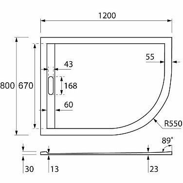 Монтаж: на подиум, в пол. Высота: 30 мм. Форма: ассиметричная. Радиус: 550. Цвет: белый. Особенности: антискользящий массажный рельеф. Особенности сифона: сифон с гидрозатвором, универсальный, обеспечивающий слив до 25 л воды в минуту, приобретается отдельно. Дополнительная информация :регулируемые ножки приобретаются отдельно ; экран приобретается отдельно