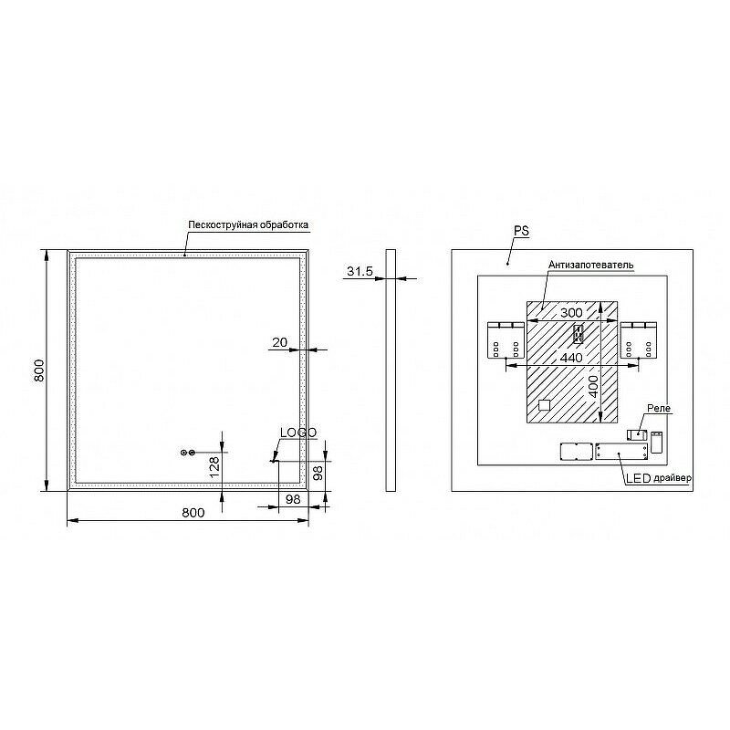 - Размеры (ШхВхГ): 800х800x32 мм.