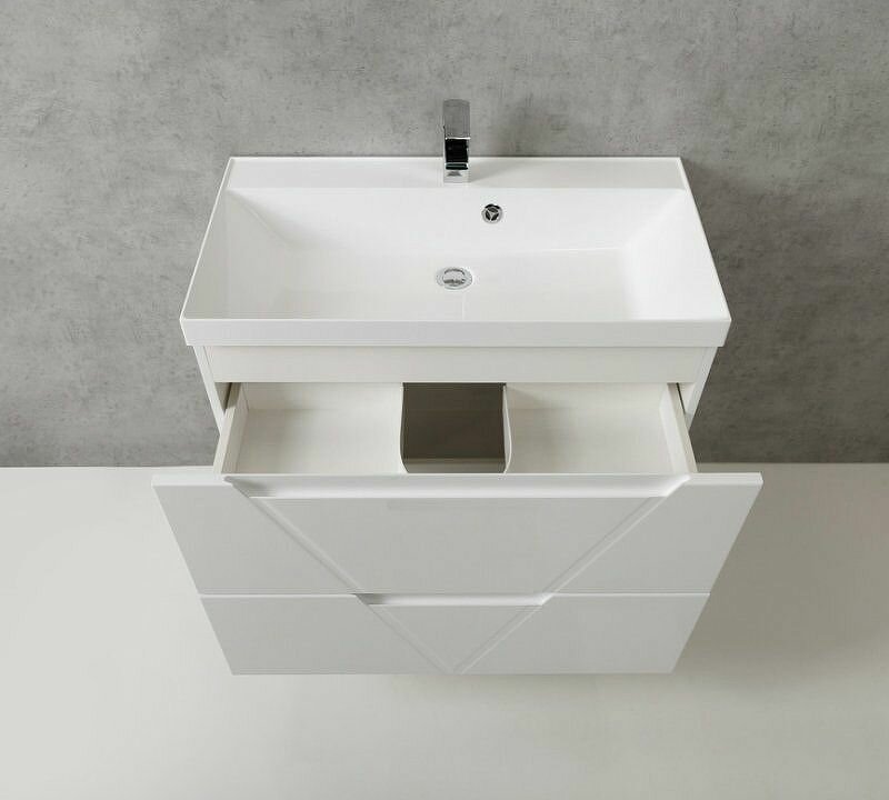 Монтаж: на стену. Ширина, см: 90 см. Глубина, см: 45 см. Высота, см: 60,5 см. Материал раковины: искусственный мрамор. Цвет раковины: белый. Система хранения: 2 выдвижных ящика. Дополнительная информация: база оснащена доводчиками Hettich скрытого монтажа с системой Soft close (плавного закрывания) - от ведущего производителя фурнитуры для мебели HETTICH (Германия);врезные (фрезерованные)ручки в плоскости фасада; раковина сифоном не комплектуется. Раковина, зеркало и пенал приобретаются отдельно (смотрите в дополнительной комплектации).