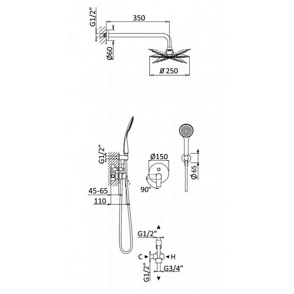 | Комплект поставки | Душевая система со встраиваемой частью и инструкция |