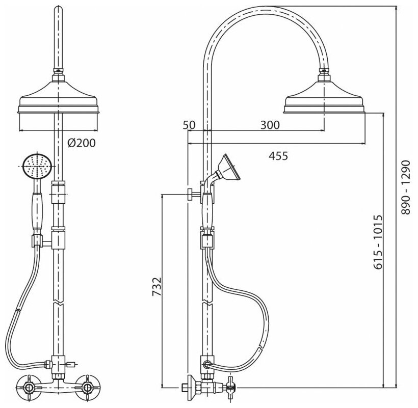 - Регулируемая по высоте душевая штанга: 890-1290 мм.