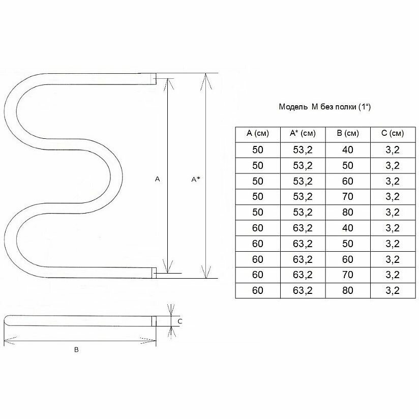 Водяной полотенцесушитель Двин M 50/70 без полки К0 хром (4627086011223) (размер: 54x70 см)
