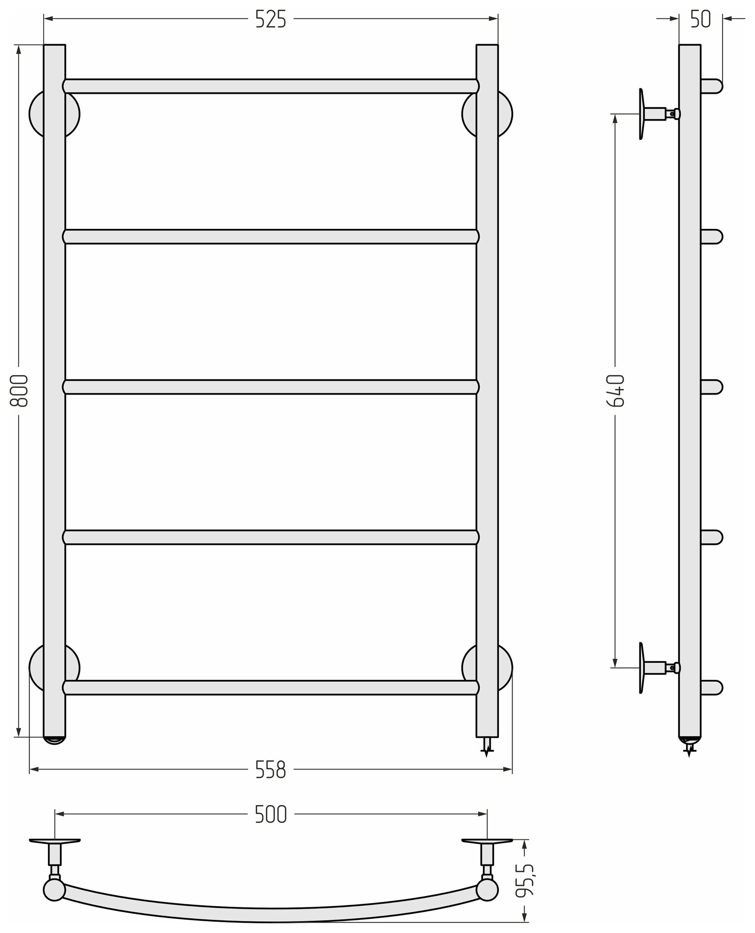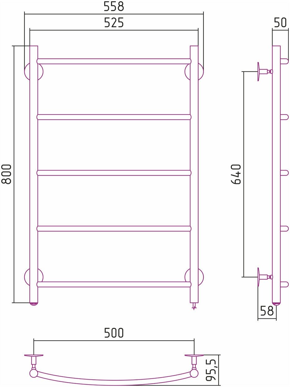Электрический полотенцесушитель Стилье Формат 40 П 80х50 Г16 (00540-8050) (размер: 80x50 см)