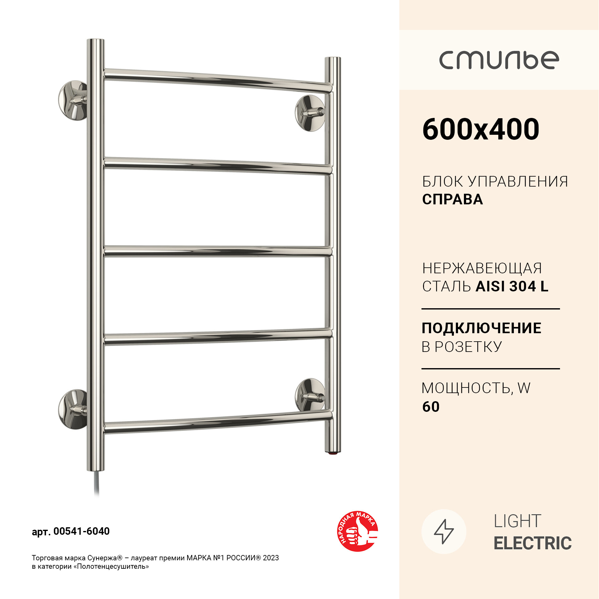 Электрический полотенцесушитель Стилье Формат 40 Л 60х40 Г16 40 Л 60х40 L (размер: 60x40 см)