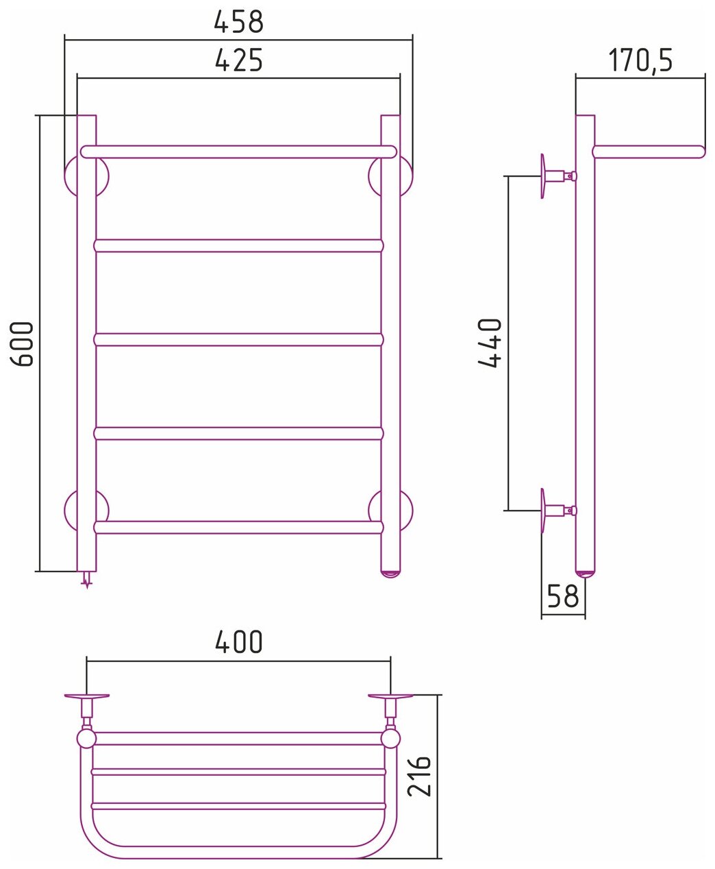 Электрический полотенцесушитель Стилье Формат 30 Л 60х40 П16 с полкой (00531-6040) (размер: 60x40 см)
