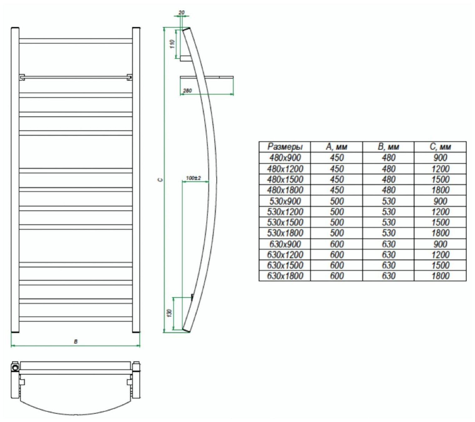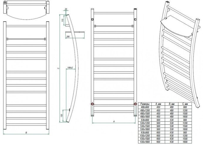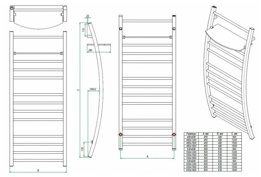 - Вид полотенцесушителя: Лесенка с верхней полкой.