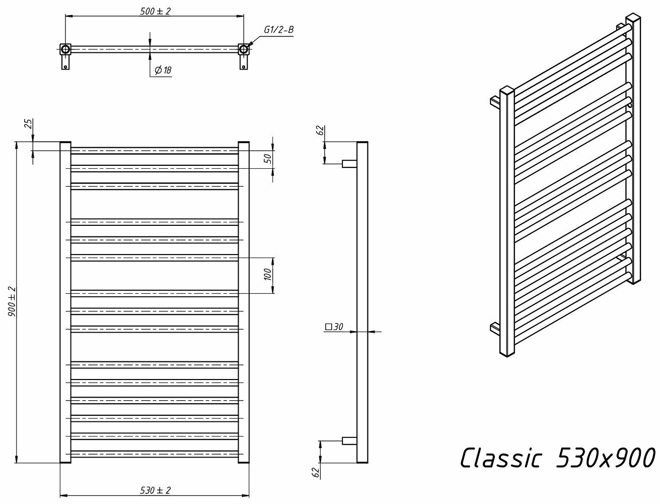 Водяной полотенцесушитель Grota Classic 53/90 (Классик 53/90)