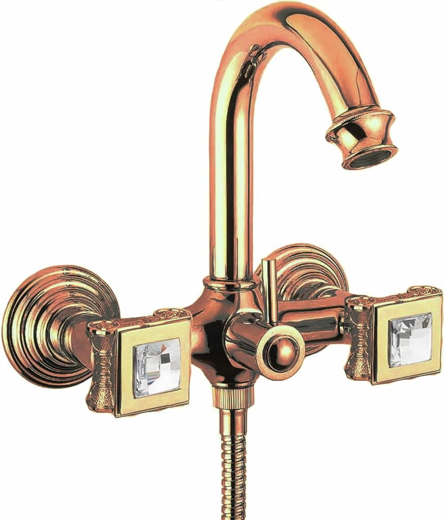 Смеситель для ванны и душа. Исполнение: Бронза. Ручки: Swarovski. Механизм: керамическая кран-букса. Отверстия для монтажа: 2 отверстия. Тип подводки: 1/2". Оснащение: эксцентрики, аэратор, дивертор.