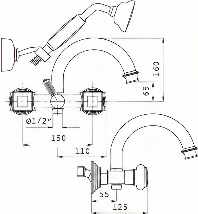 - Тип товара: смеситель для ванны и душа