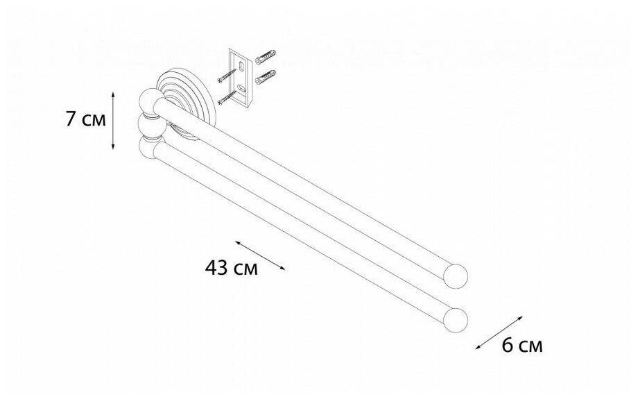 полотенцедержатель рога 2-ой, монтаж: настенный. Ширина: 44,5. Высота: 6,2 см. Глубина: 6,2 см. Метод крепления: шурупы. Тип рисунка: без рисунка. Фактура: гладкая. Форма: округлая