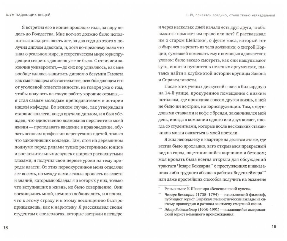 «Звук падающих вещей» — роман о преодолении травм прошлого: не только человеческих (главного героя), но и целой страны. Герой произведения вспоминает своего друга, смерть которого я не отпустила. Действия романа происходит в Боготе, в городе, где происходила тирания Пабло Эскобара, наркоторговца, который залил целую страну кровью. В этом, как кажется, мрачном месте, так и бурлит жизнь, но одиночество и травмы героя не дают ему спокойно жить, как и Колумбии. По мере чтения романа, благодаря переводчику Михаилу Кожухову (а роман имеет 2 равноценных, но разных перевода), вы всё больше погружаетесь в далёкий мир Колумбии, с её ритуалами и особенностями. В конце романа, как и герой, вы пройдёте сложный путь преодоления, приобретения и дальнейшей потери, но вас будет ждать приятное ощущение, видь жизнь для этого и создана, чтобы находить что-то и терять это в течение жизни.