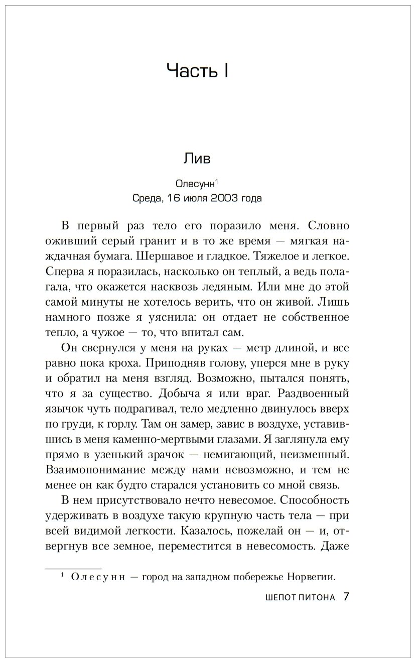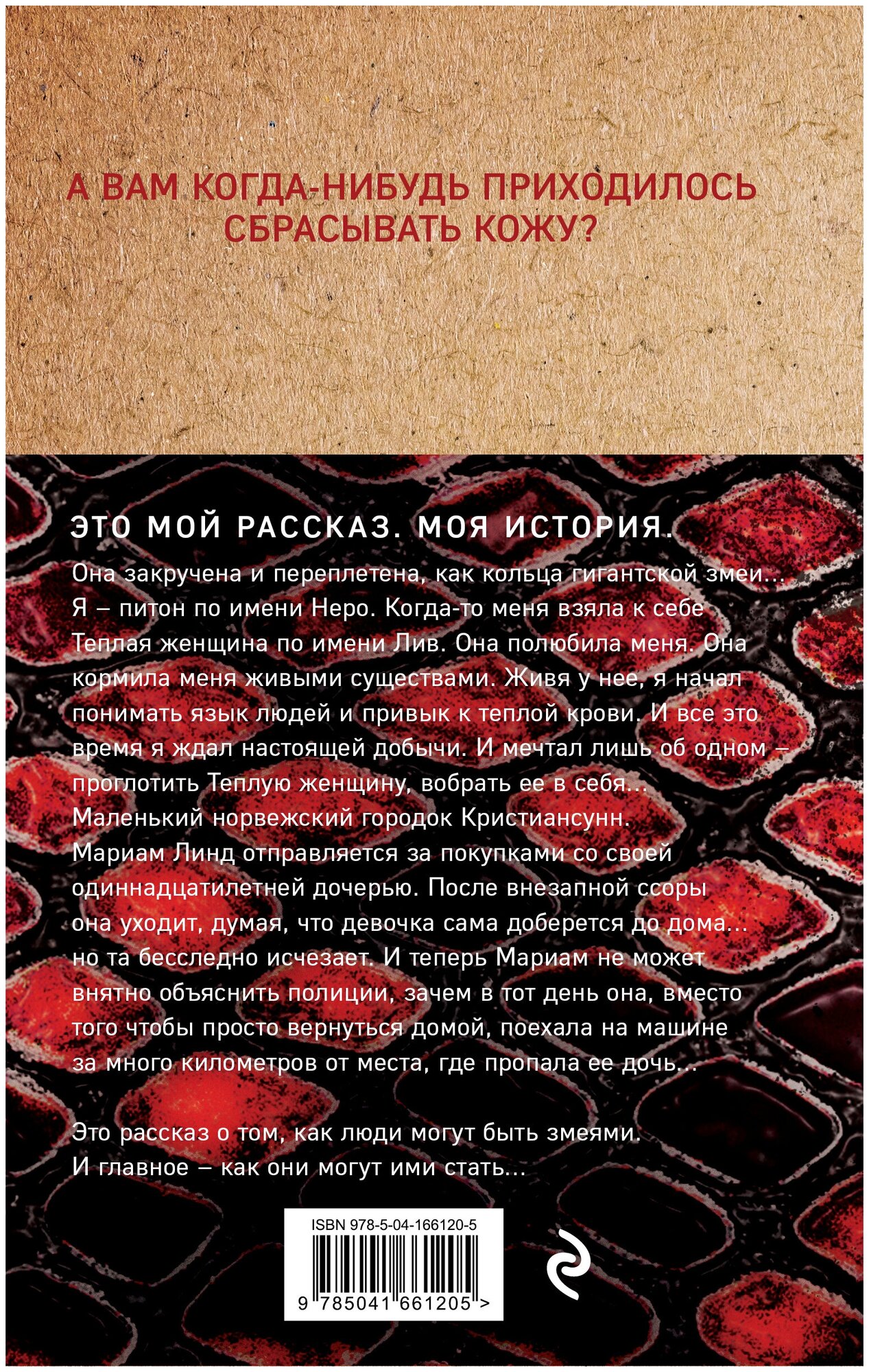 Это мой рассказ. Моя история. Она закручена и переплетена, как кольца гигантской змеи… Я - питон по имени Неро. Когда-то меня взяла к себе Теплая женщина по имени Лив. Она полюбила меня. Она кормила меня живыми существами. Живя у нее, я начал понимать язык людей и привык к теплой крови. И все это время я ждал настоящей добычи. И мечтал лишь об одном - проглотить Теплую женщину, вобрать ее в себя…
