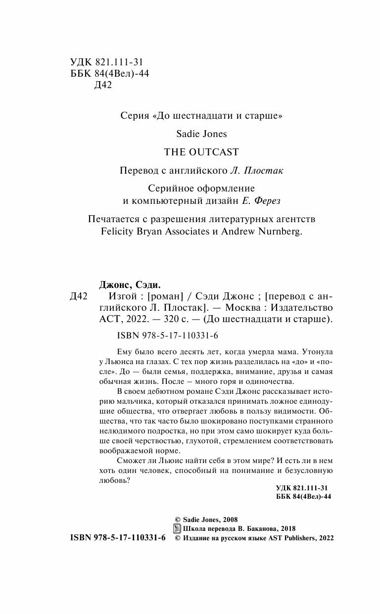 Книга: Изгой (Сэди Джонс); ИЗДАТЕЛЬСТВО "АСТ", 2022