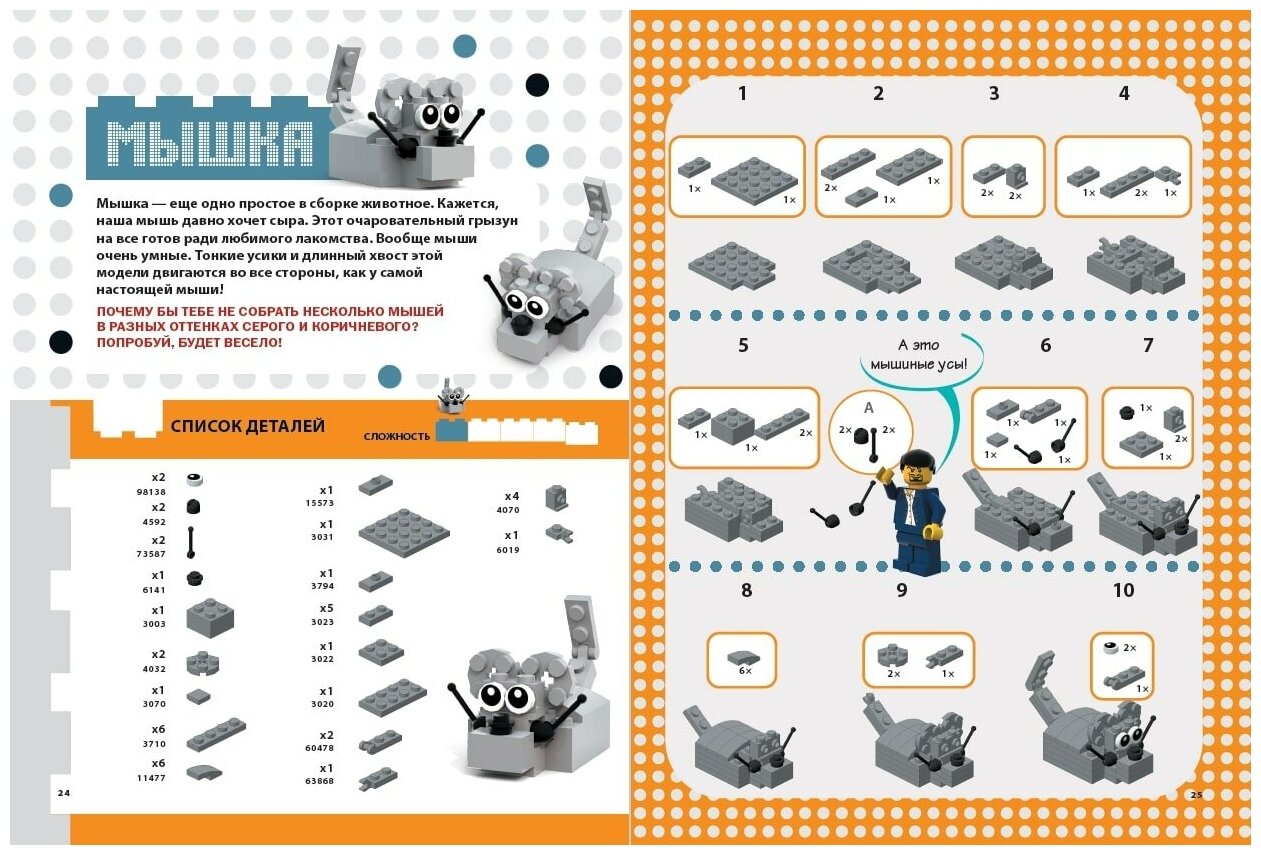 • Пошаговые инструкции для создания ярких образов животных из LEGO®.