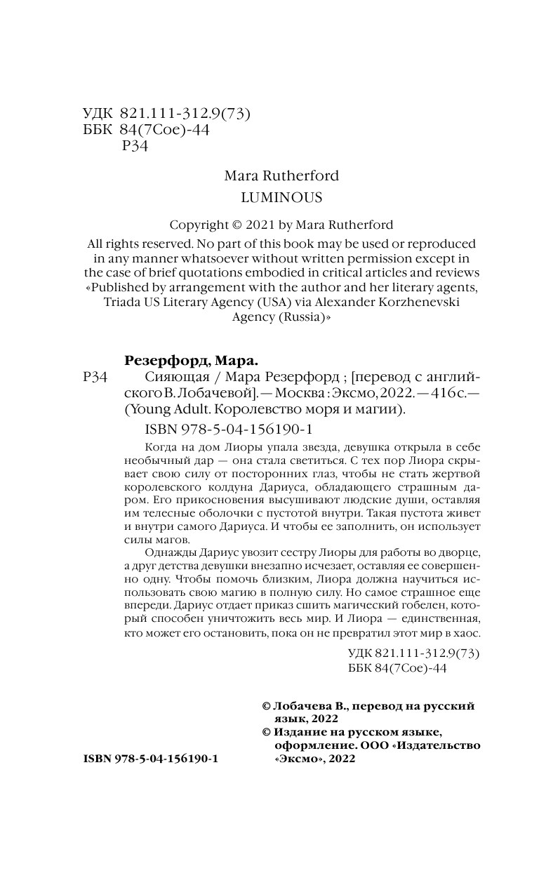 Книга: Сияющая (Мара Резерфорд); Эксмо, 2022