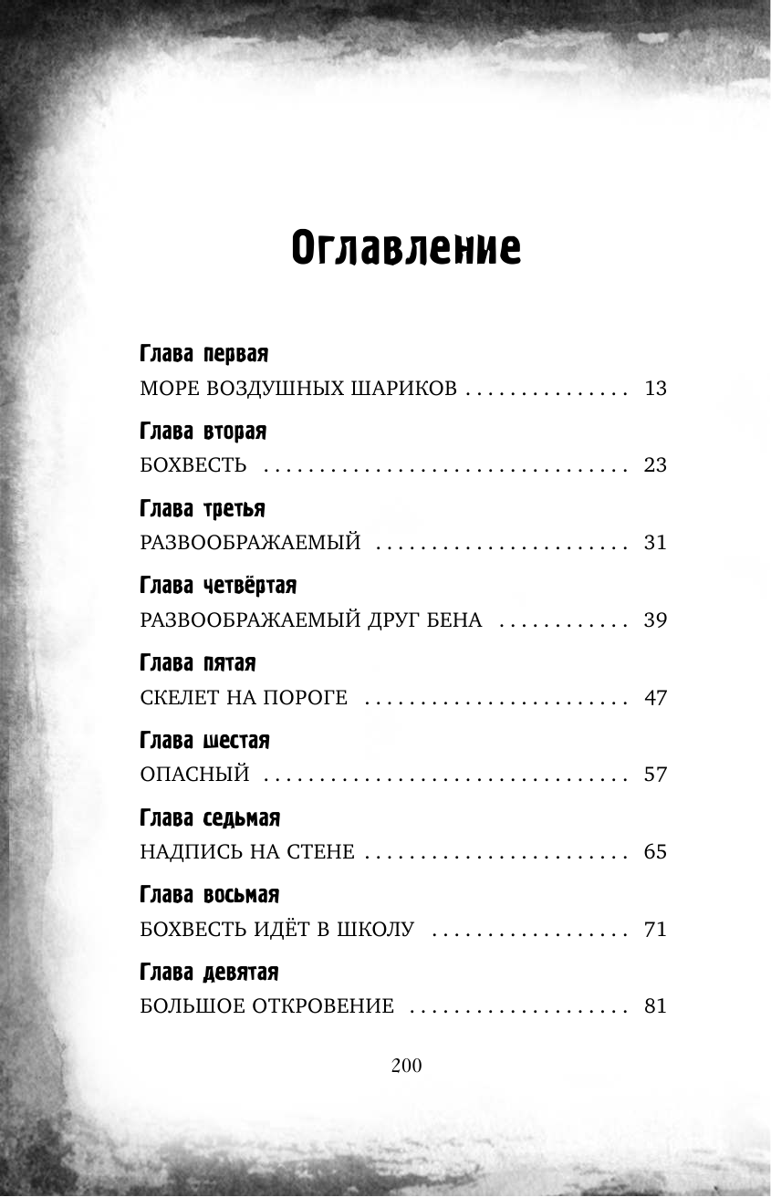 Очень добрая книга. Бен своим неуёмным воображением сделал своих выдуманных друзей настоящими. Его придуманный монстр Бохвесть большая пушистая милашка. Скелет Ключес, который пытается решить проблемы с воображением, очень весёлый. Его фразочки огонь.