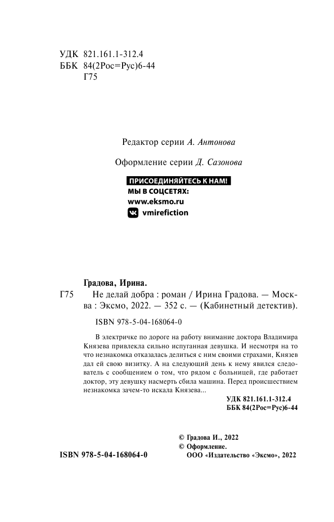 Книга: Не делай добра (Ирина Градова); Эксмо, Редакция 1, 2022