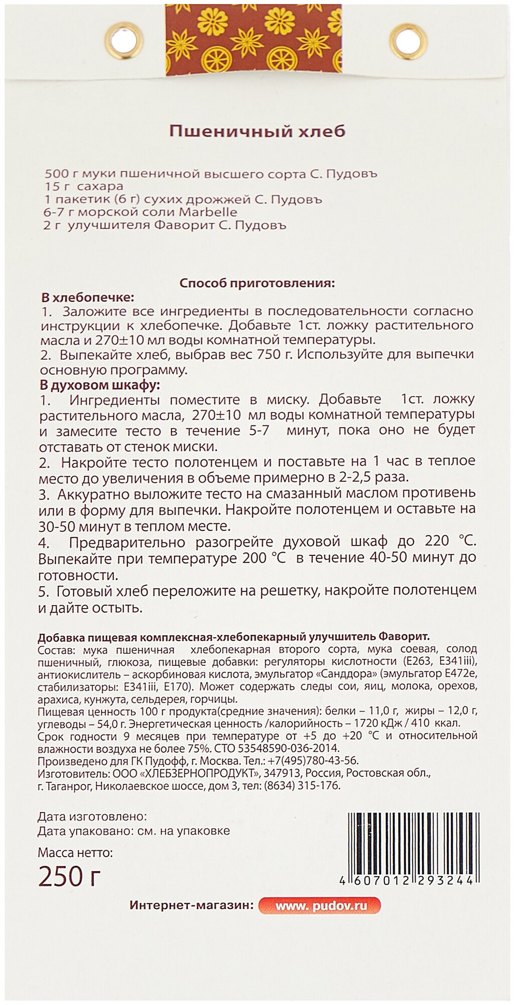 Сервис сравнения цен СкидкаГИД предлагает сравнить цены на товар «Улучшитель хлебопекарный С.Пудовъ Фаворит 250г»