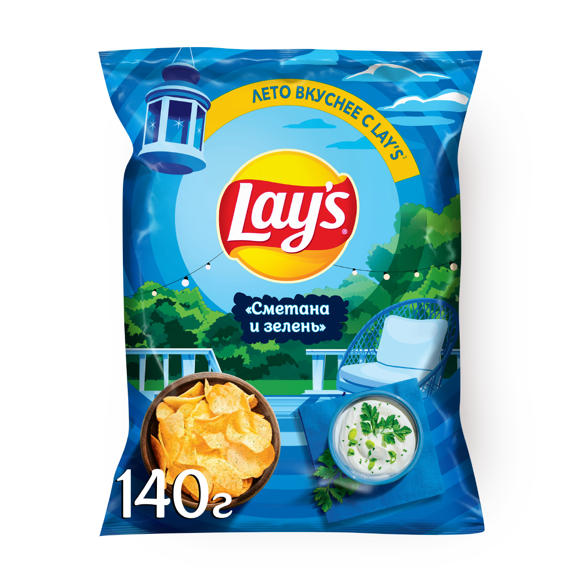Чипсы Lays сметана-зелень, 140г с золотистой корочкой и приятным сливочно-пряным вкусом. Они хорошо сочетаются с острыми соусами. Создается интересное гастрономическое сочетание, которое понравится всем гостям. Подавать их можно в качестве закуски к слабоалкогольным напиткам в большой стеклянной посуде. Чипсы можно использовать и для эффектной сервировки овощных и мясных салатов и паштетов. В таком случае они получатся порционными. Это очень удобно — взял одну штучку и съел, не испачкав руки и посуду. Домочадцам понравится такой способ подачи. Продукт можно с удовольствием съесть при просмотре фильма или спортивного мероприятия. Чипсы исчезнут очень быстро, поэтому лучше держать про запас еще одну упаковку. Изделие подходит для быстрого перекуса, поэтому пачку можно взять с собой в путешествие или на прогулку. Чипсы производятся из отборного плотного натурального картофеля. Продаются в пластиковом пакете, сохраняющем вкусовые и потребительские свойства. Он не допускает попадания влаги внутрь и повреждения целостности продукта. Хранить его нужно вдали от источников тепла в сухом месте, чтобы избежать размягчения.
