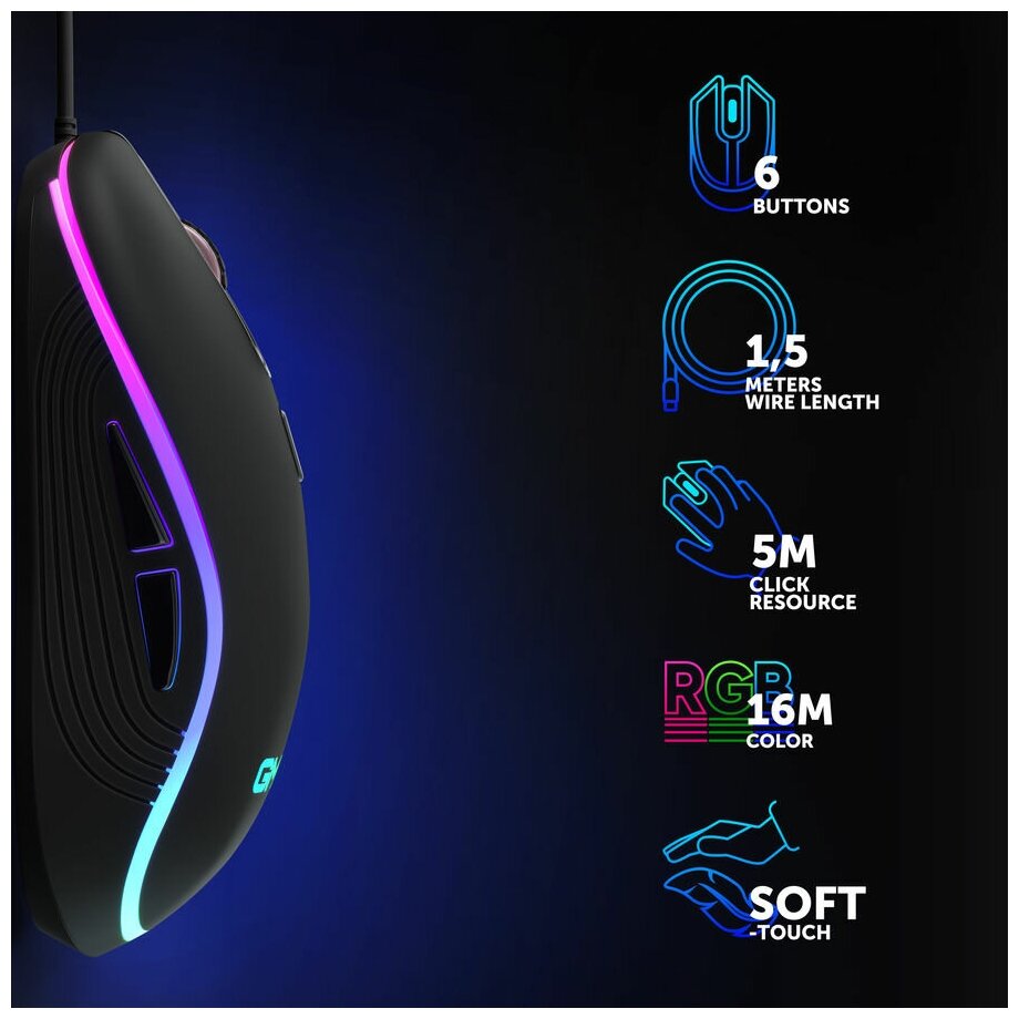 ОсобенностиАвтоматическая конфигурация без специальных драйверов. Прорезиненное колесо прокрутки. Модель 723GM Бренд OKLICK PartNumber/Артикул Производителя 1533533 Длина провода 1.5 Дизайн для правой руки Технология оптическая Подключение по USB ДА Размеры мыши 66x122x39мм Вес (мыши) 106.5 Тип соединения мыши проводная Разрешение сенсора, макс. 3200 Изменение чувствительности сенсора кнопкой ДА Для геймеров ДА Количество кнопок 6 Колесо прокрутки ДА Тип Мышь Подсветка мыши ДА Тип подсветки RGB Длина упаковки (ед) 0.21 Ширина упаковки (ед) 0.16 Высота упаковки (ед) 0.05 Габариты упаковки (ед) ДхШхВ 0.21x0.16x0.05 Вес упаковки (ед) 0.3 Объем упаковки (ед) 0.00168 Питание от по шине Цвет оформления черный Тип поставки Ret Комплект поставки Игровая компьютерная мышь 723GM Длина мыши 122 Ширина мыши 66 Высота мыши 39 Поддержка разрешений 1200/1600/2400/3200 Интерфейс подключения USB Максимальное ускорение 8 Максимальная скорость 0.76 Частота опроса USB порта 125/250/500/1000 MTBF, кликов 5000000 Специальное покрытие корпуса soft touch Возможность работы на покрытиях на любой поверхности EANCode 4630143106121 .