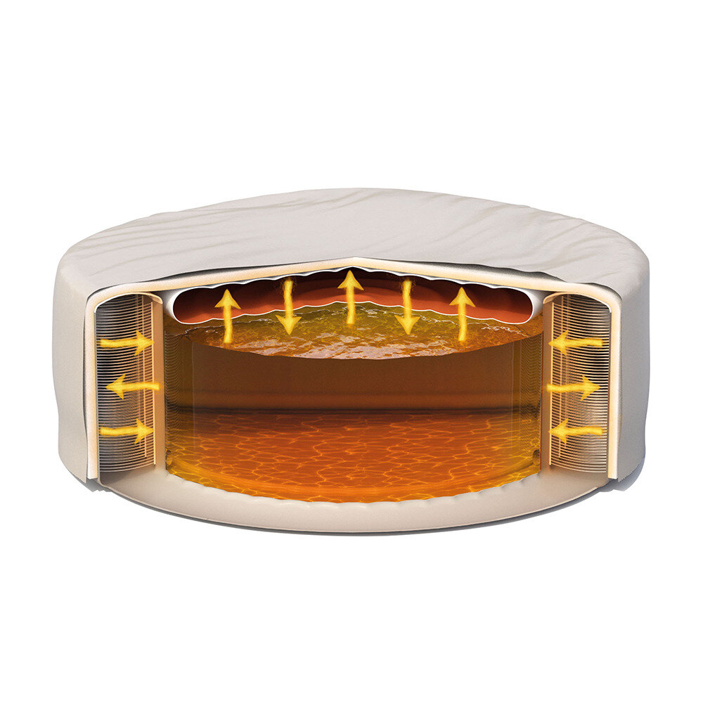 Это покрытие является инновационным и имеет 2 сильных стороны: защиту и теплосбережение. Его высокая термостойкость обеспечивает изоляцию, намного превосходящую обычные тенты, и сводит к минимуму потери тепла. Благодаря круглой форме, идеально подходящей для спа. Благодаря этому покрытию обогрев воды работает меньше, и ваш счет за электроэнергию уменьшается!