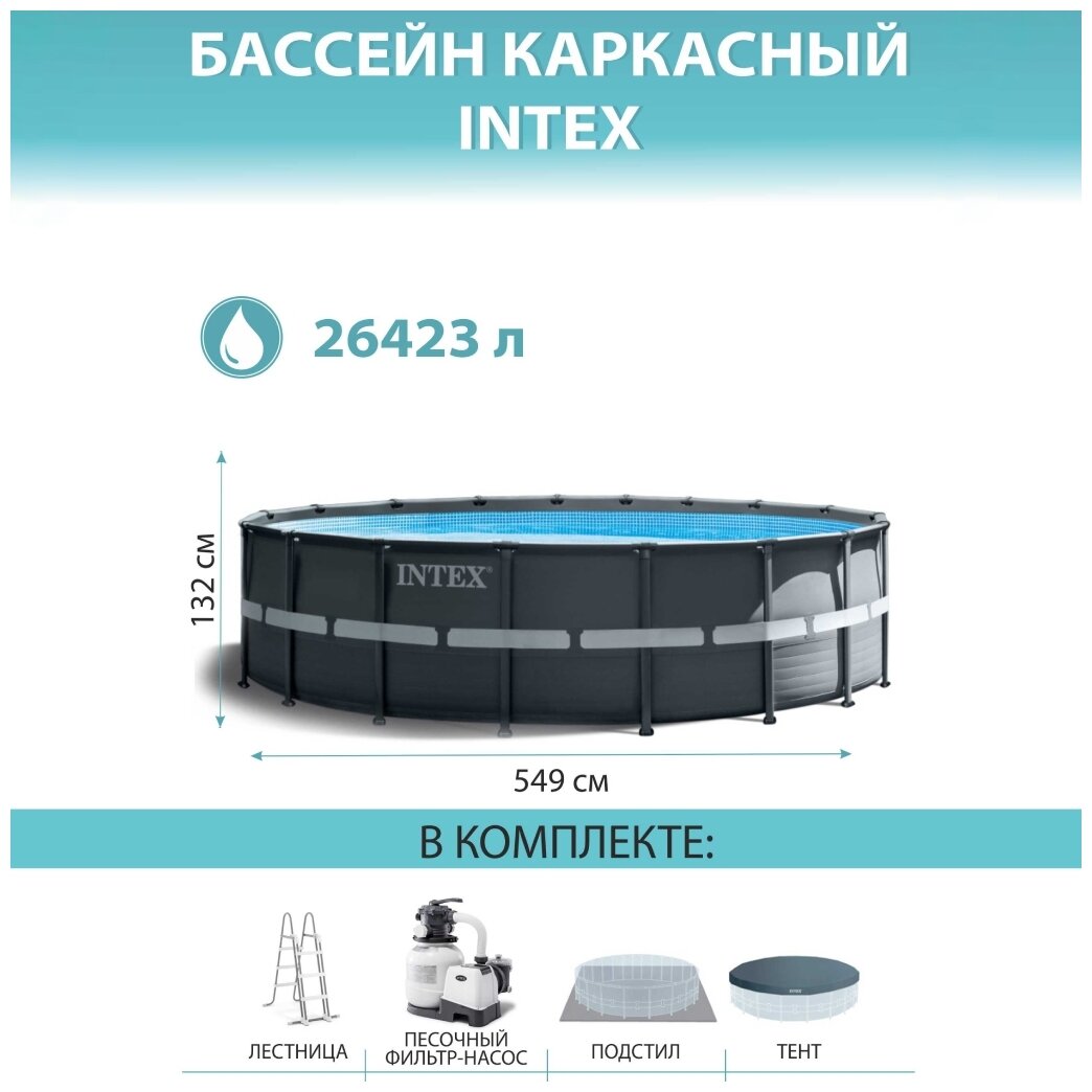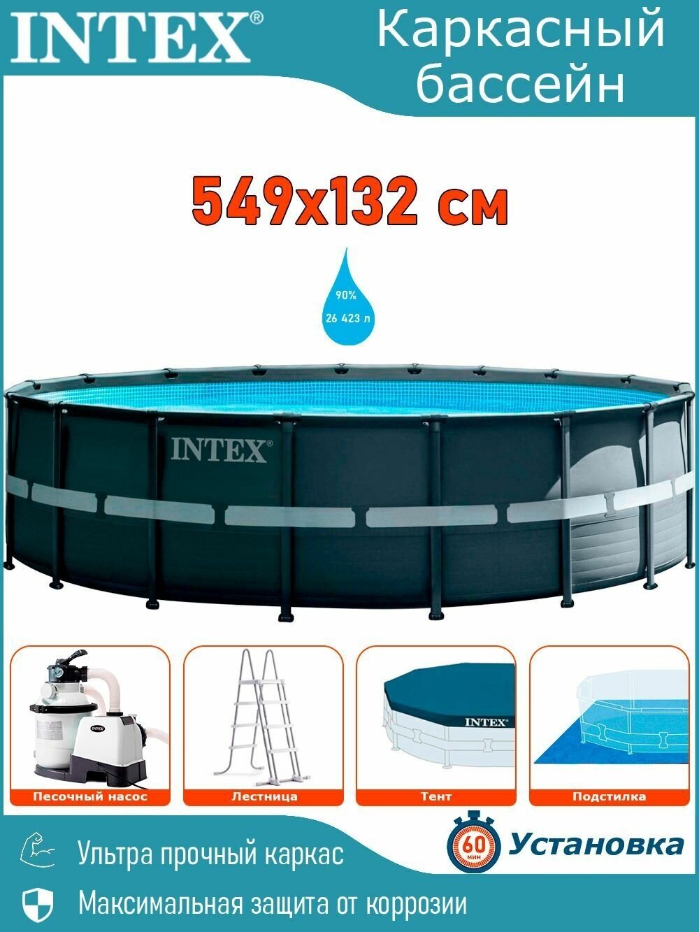 Каркасный бассейн Ultra Frame 549х132см (песочн.фил.-насос 7900л\ч лестница тент подстилка) 26330 Intex Ultra Frame 549132 7900 26330