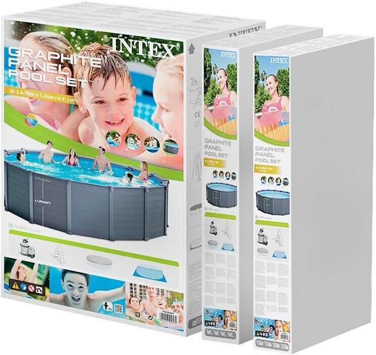 Каркасный бассейн Graphite Gray Panel Pools (круг) 4.78 x 1.24 м 26384 Intex Graphite Gray Panel Pools 478 x 124 26384
