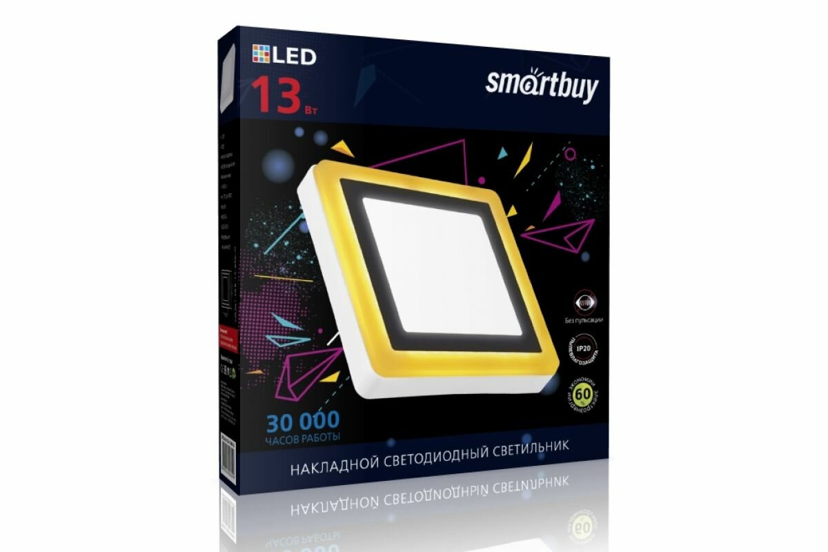 светильник встраиваемый smartbuy квадрат с подсветкой dlb 13w/6500k+o/ip20 sblsq-dlb-13-65k-o