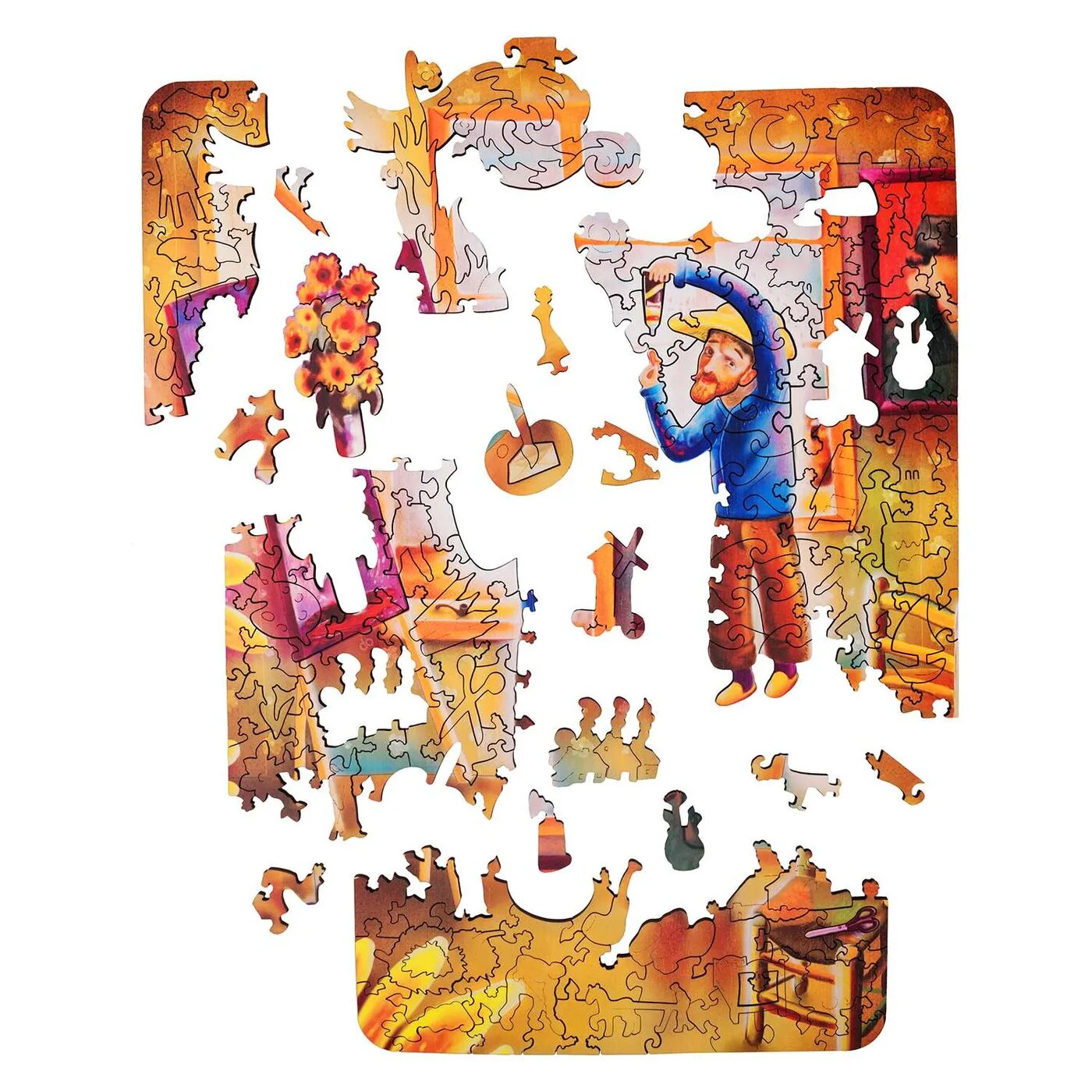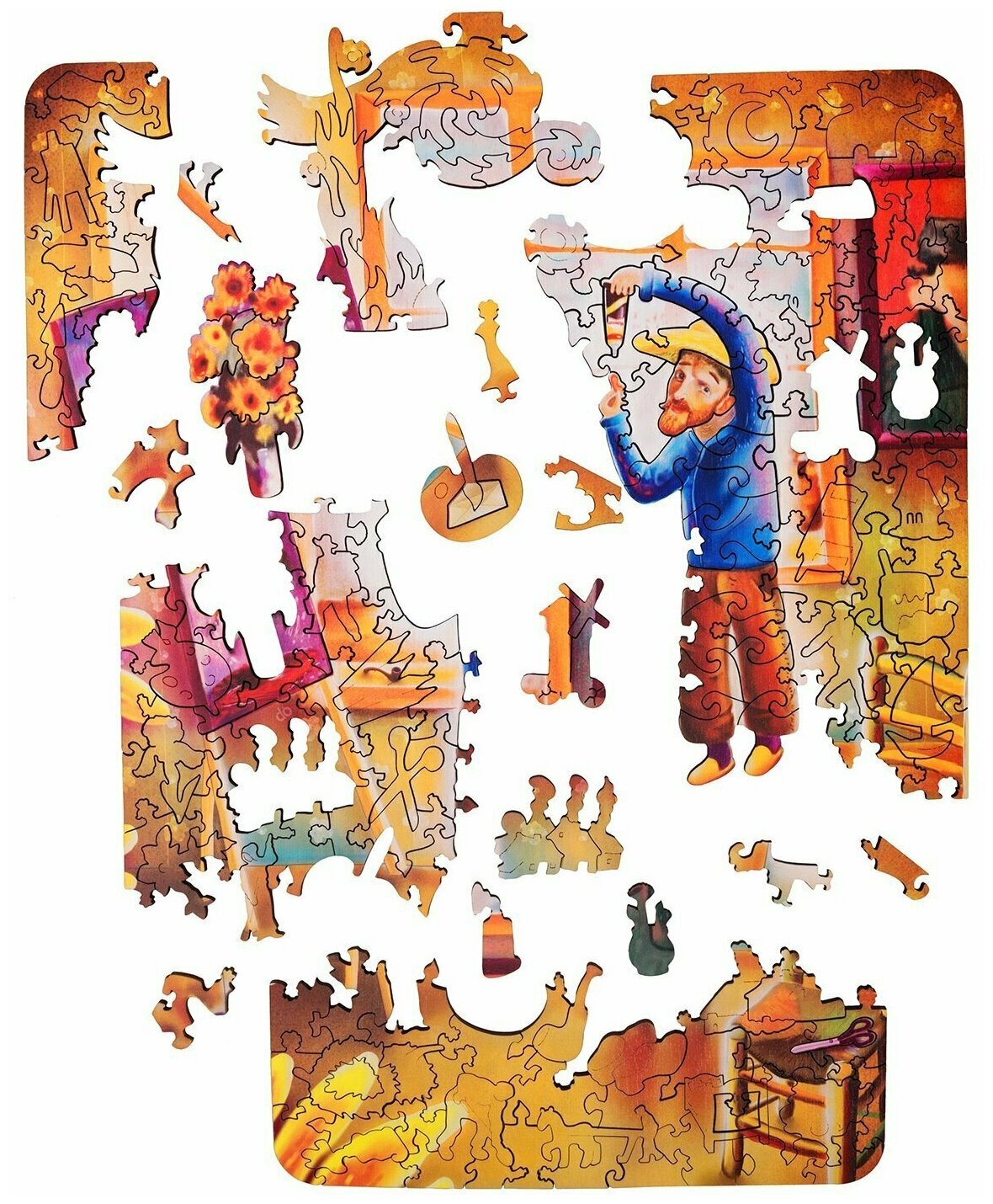 Ходят слухи, что Ван Гог отрезал себе ухо и послал его некой даме, на деле ситуация, кажется, состояла иначе. После очередной ссоры со своим другом Полем Гогеном он кинулся на него с бритвой в руках. Поль смог остановить его, но в ту же ночь Ван Гог отрезал себе мочку уха. То ли это был акт раскаяния, то ли приступ безумия, связанный с пристрастием художника к абсенту. Так или иначе есть и хорошие новости - на этом пазле Винсент повеселел, осознал свои ошибки и все у него будет хорошо. От предыдущей версии пазла отличается коробкой.