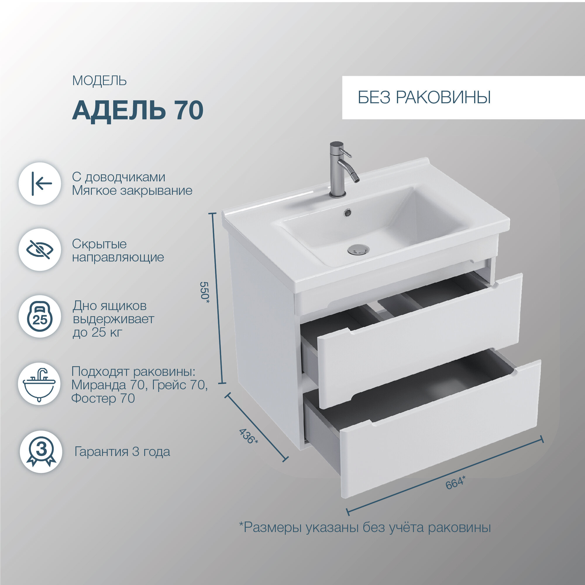 Сервис сравнения цен СкидкаГИД предлагает сравнить цены на товар «Тумба для комплекта Sanstar Адель 70 подвесная 172.1-1.4.1.»