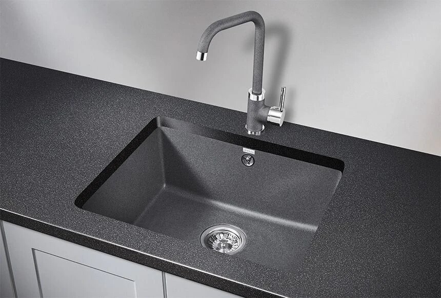 Обновите свою кухню с новым поколением моек из композитного кварцевого материала. Универсальный монтаж позволяет интегрировать мойку на одном уровне со столешницей или над ней для максимальной гибкости в дизайне. Цвет-графит